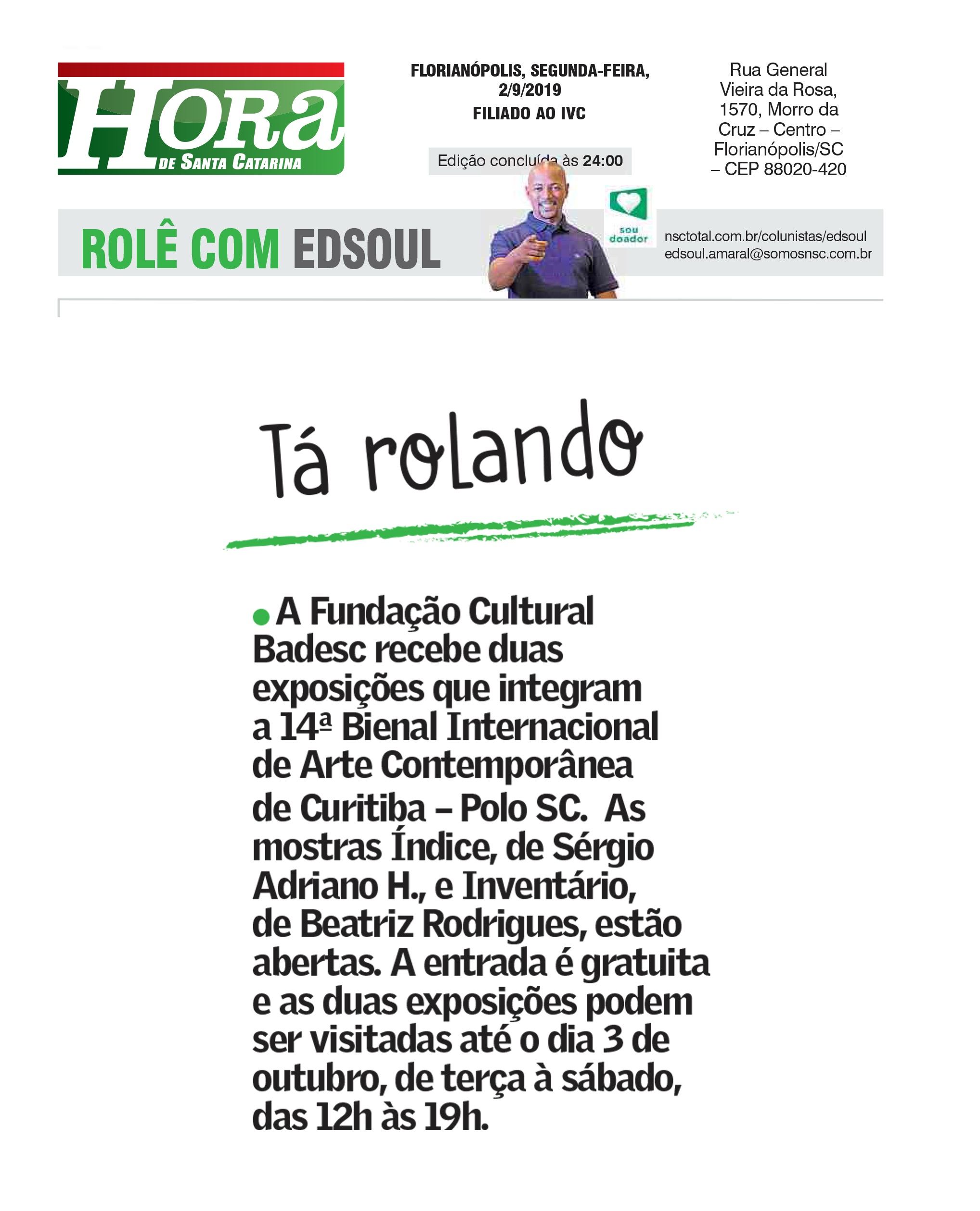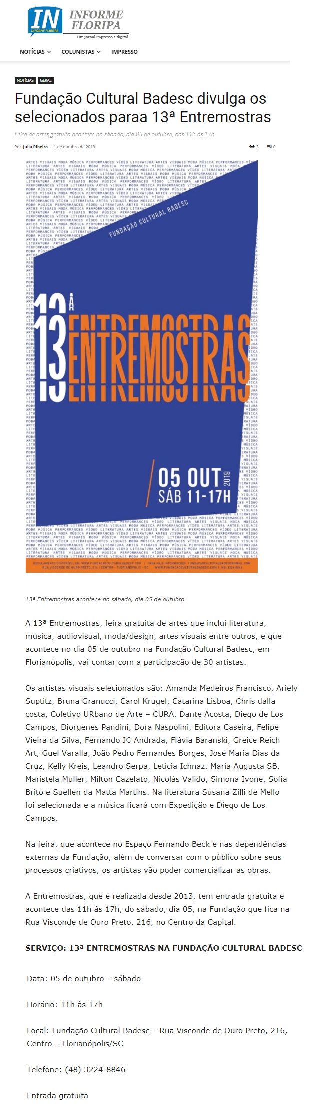 Com trajetórias consistentes e produções conectadas às discussões da atualidade, os três artistas desenvolvem suas criações em diferentes mídias: desenho, fotografia e múltiplos suportes. Eles apresentarão seus trabalhos em três exposições paralelas que ocuparão todo o espaço Fernando Beck, principal espaço expositivo da Fundação Cultural Badesc.