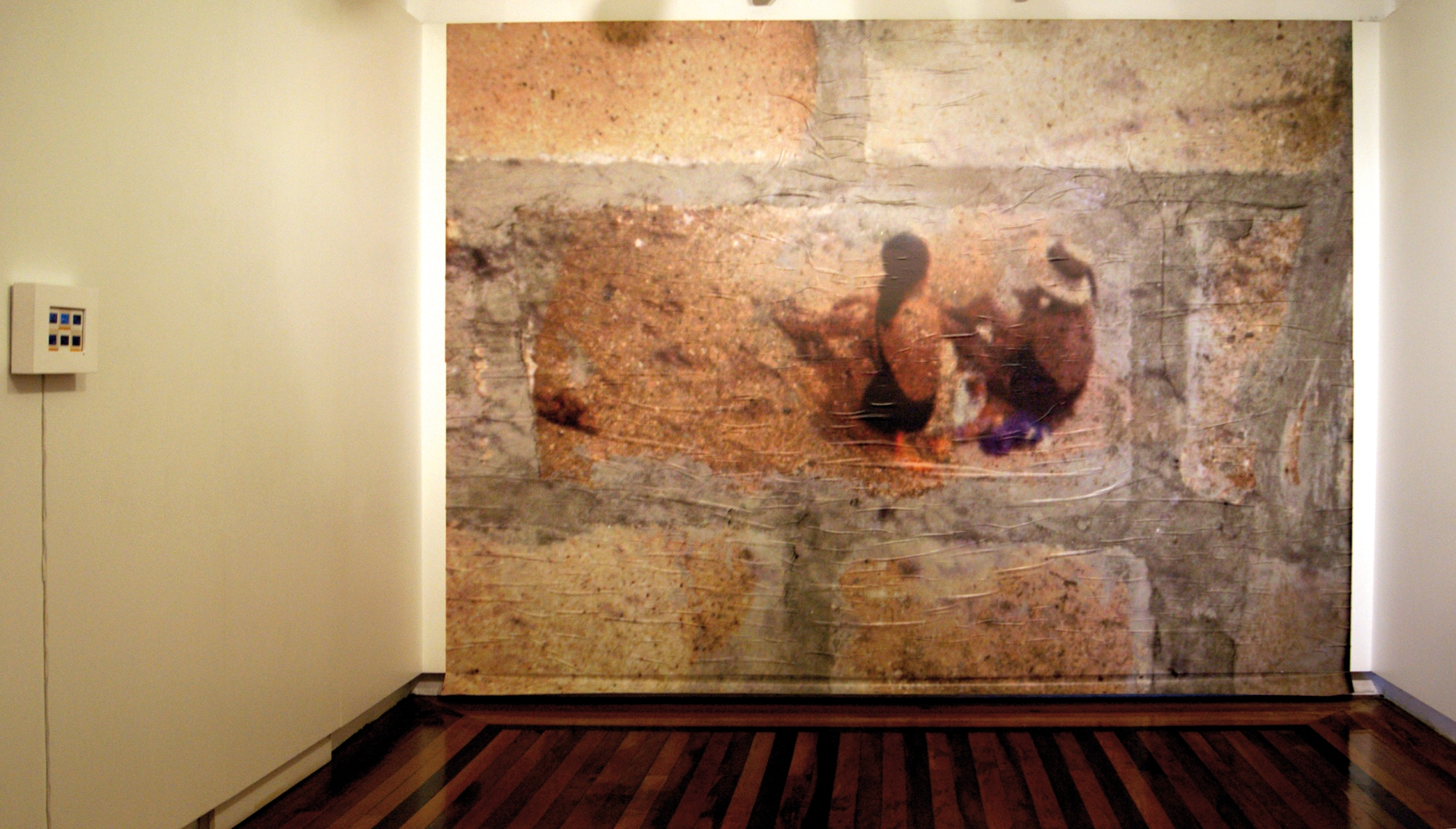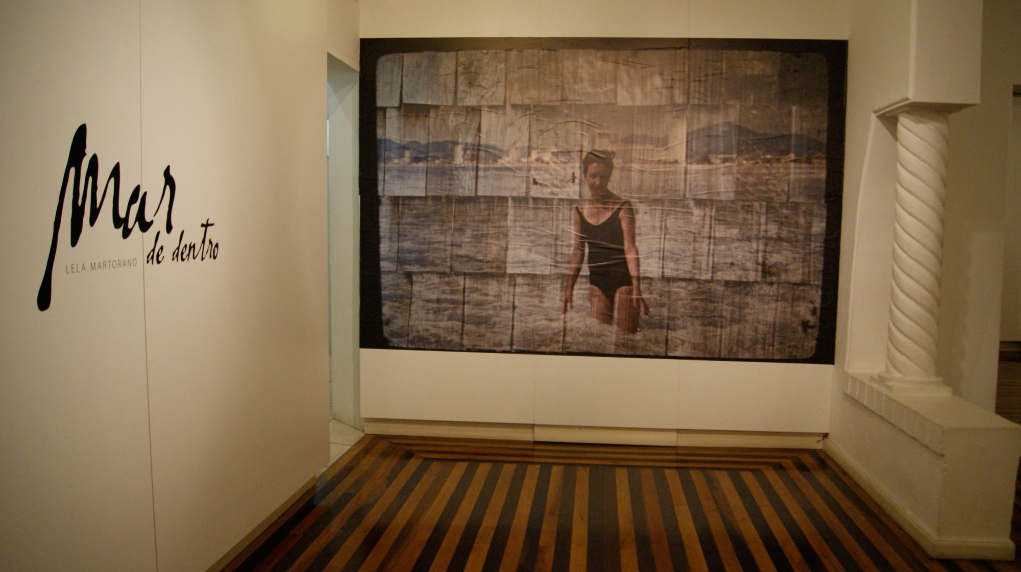 No processo, projeta os slides marcados pelo tempo sobre muros desgastados e antigos cartões postais estabelecendo uma nova imagem a partir dessa fusão. A exposição Mar de Dentro apresenta algumas obras criadas em uma residência feita no Museu de Arte Moderna da ilha de Chiloé (Chile, 2011). Lela Martorano resgata a memória da cidade e interfere com sua memória pessoal, procedimento que já havia utilizado na exposição Deslumbramientos na cidade de Granada (Espanha, 2009). “As fotos transformam o passado no objeto de um olhar afetuoso” 3, observa Susan Sontag. A intimidade de um momento em família é somado ao afeto com a cidade. Assim, a projeção do tempo incide sobre o espaço. Sontag ainda percebe que “por meio de fotos, cada família constrói uma crônica visual de si mesma – um conjunto portátil de imagens que dá testemunho da sua coesão”. As fotografias que escolhe no entanto, não são retratos senão cenas descontraídas que revelam a espontaneidade do momento. A presença do mar reforça a intensidade da imagem. Para Gaston Bachelard, a água é um elemento transitório, corre sempre, cai sempre; “anônima sabe todos os segredos. A mesma lembrança sai de todas as fontes.” Há profundidade em cada gota, basta lembrar a densidade do aplastamiento de las gotas, de Julio Cortazar. Em Castro Chiloé) existe o mar interior que deu o título da exposição. Parece então que esse interior das águas traz a sensação de um tempo vivido. Na dimensão nostálgica de uma gota, as imagens carregam lembranças passageiras.
