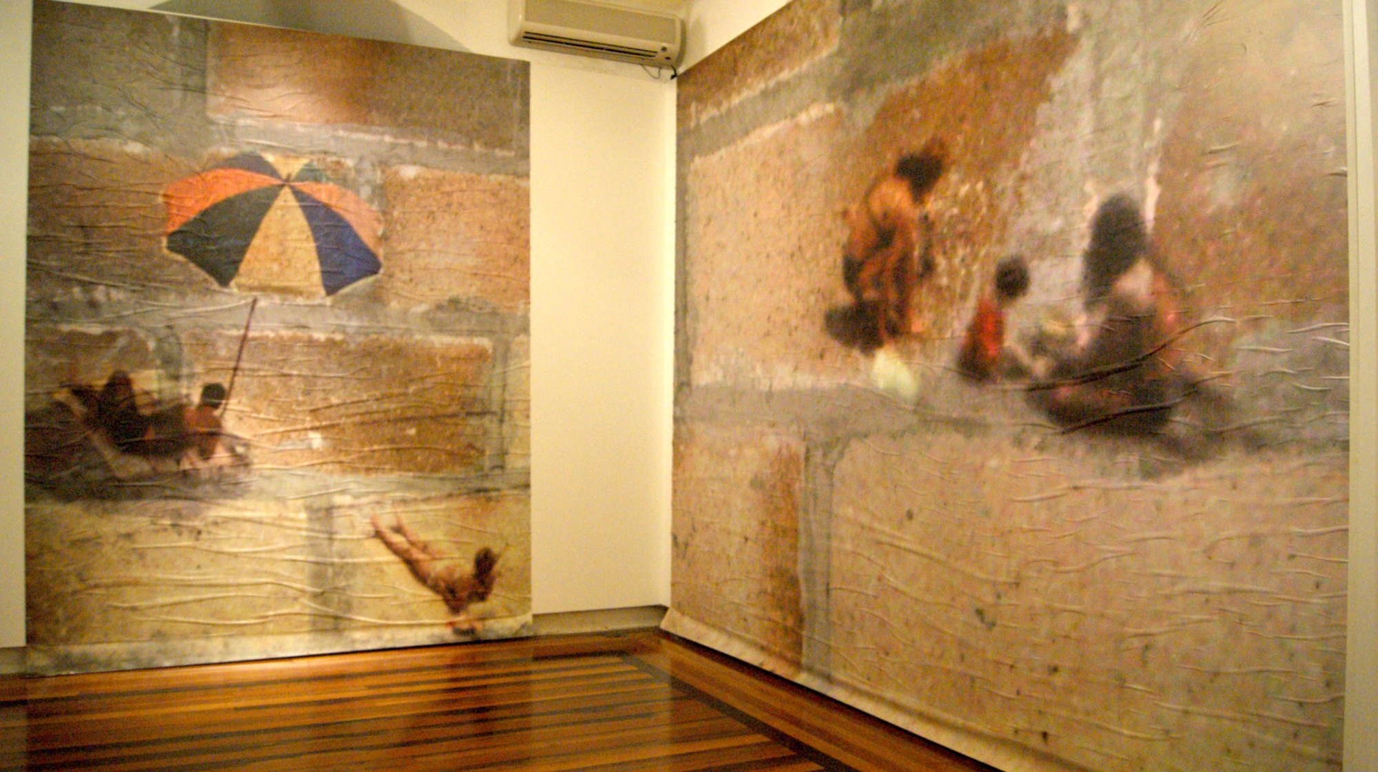 Desta maneira, a escolha do pôster lambe-lambe para apresentar as fotografias demarca também o caráter efêmero. O termo lambe-lambe, além de referir-se à pequena caixa preta usada pelos fotógrafos no início do século XX, é também um pôster de papel colado diretamente em muros e postes de rua, usado em geral para fins publicitários. Ao optar por esse suporte, a artista desloca a estética urbana para dentro do espaço expositivo. As fotografias se desfazem devido à fragilidade do papel empregado. Dentro da galeria, o papel é protegido das intempéries, mas não deixa de apresentar seu aspecto quebradiço, desaparecendo em um tempo mais lento. Em outros momentos, porém, a artista também leva o trabalho às ruas, confundindo-o entre os cartazes publicitários. Existe um constante movimento de deslocamentos, que transforma cada etapa do processo criativo. Um trabalho de pós-produção em que a artista se apropria de uma imagem já produzida para realizar outra. A foto do arquivo aparece no muro, migra para outra fotografia e volta para outro muro. Os desvios da cena e deslocamentos de suporte estabelecem um incessante fluxo de memórias. Nesse mar de dentro, as águas evocam imagens longínquas de um tempo suspenso. Percebe Heráclito, “é morte, para as almas, o tornar-se água.” Nas imagens de Lela Martorano, as lembranças são resgatadas nas sutilezas de um olhar afetuoso e se desfazem lentamente à deriva de um tempo reencontrado.