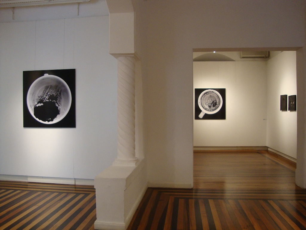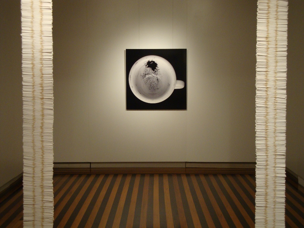 Mais do que a memória dessa tradição, o que a artista recupera para seus trabalhos é a lógica desses reflexos e seu resultado. Vestígios dessa relação íntima e privada, daquele momento de plena comunicação, são conservados em suas fotografias de borras em fundos de xícaras. Não sabemos interpretá-las, não conhecemos que as fez. No entanto, energia contida nessas manchas negras, sua força desencadeadora, parece retida nessas reproduções. Sugam o espectador, transportando-o para o espaço de uma relação mais estreita entre as pessoas. (…)