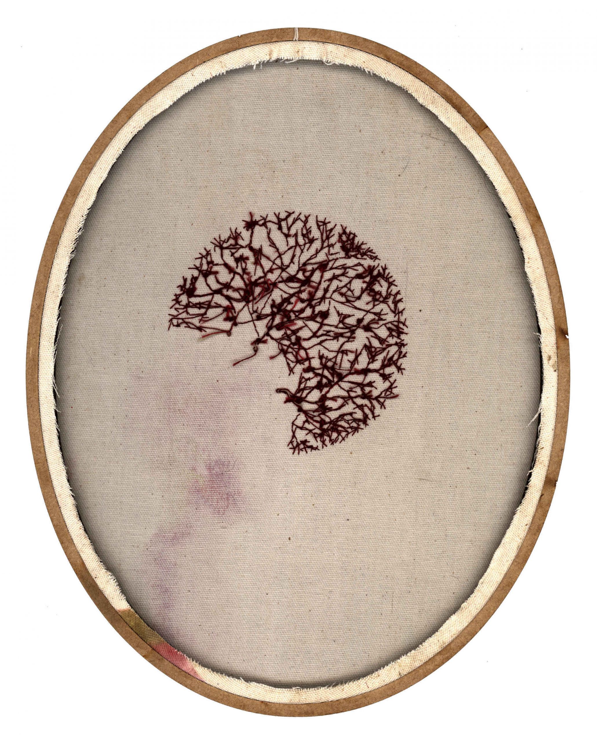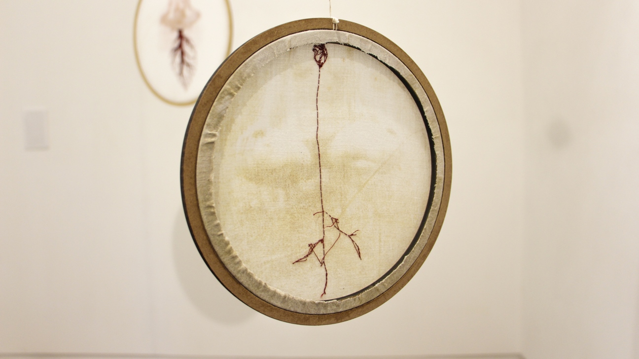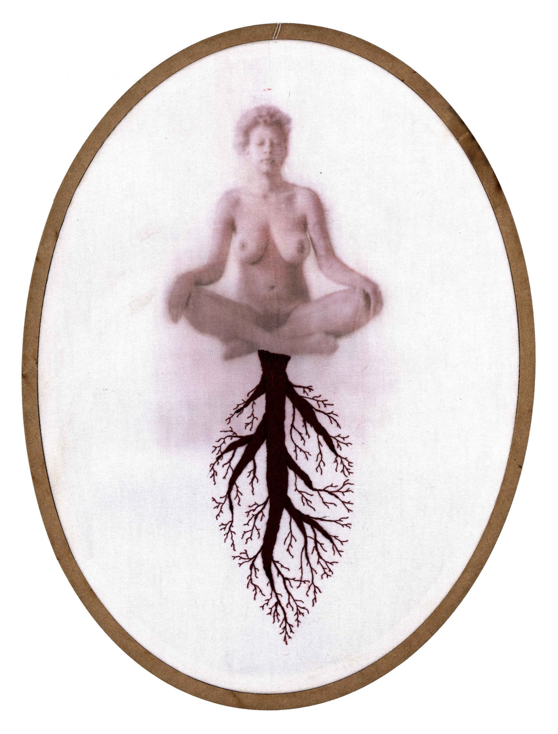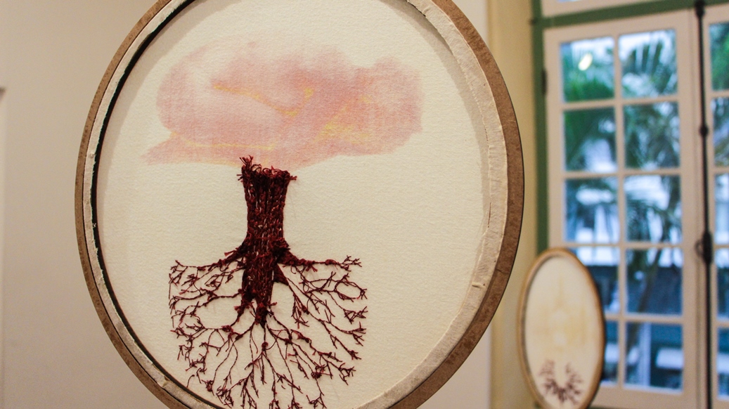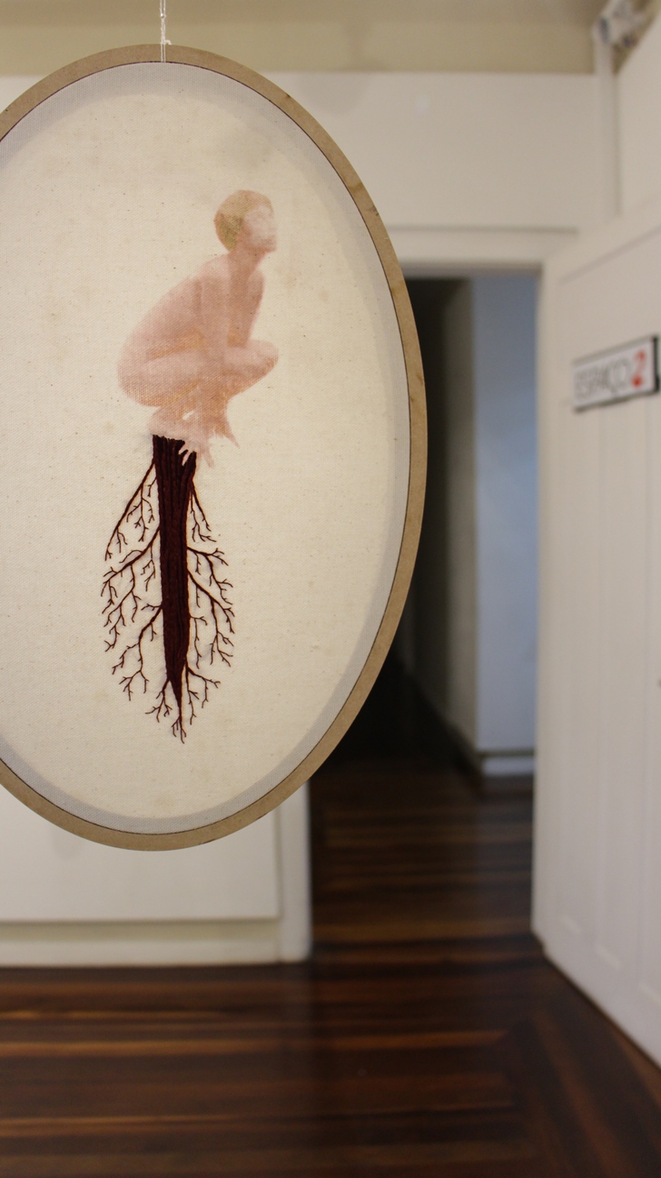 Por mais que o bordado possa, sim, produzir resultados bastante grandes, e ainda possa ser muito explorado como técnica, a idéia da monumentalidade pode não ser o desejo das artistas e artesãs. Muitas vezes nos dedicamos por horas e o resultado são alguns centímetros. E tudo bem. Esse gesto pequeno, essa ferramenta que habita a ponta dos dedos, esse bastidor bem pertinho de nós; fazem parte de um processo íntimo, mas também delicadamenteintenso, que reflete em momentos de diálogo consigo mesma, proporcionando um processo poético diferente de muitas outras formas de arte. Não queremos distância e contemplação; queremos proximidade, tato e textura, e isso faz toda a diferença. A ideia de que o bordado só serve para produzir objetos decorativos e estampas florais foi ideologicamente produzida, a fim de invisibilizar as técnicas desenvolvidas por mulheres e seu papel na sociedade. Eu acredito que trazer a figura da raiz também desafia essa concepção. Primeiro porque a raiz, na maioria dos casos, não está à vista. Ela diz respeito a coisas que acontecem para além de onde os olhos alcançam, se lançando por um mundo desconhecido, um mundo avesso. Elas trazem a ideia de que há muito mais das coisas do que podemos ver, e que existe todo um fluxo silencioso essencial para existência das coisas.