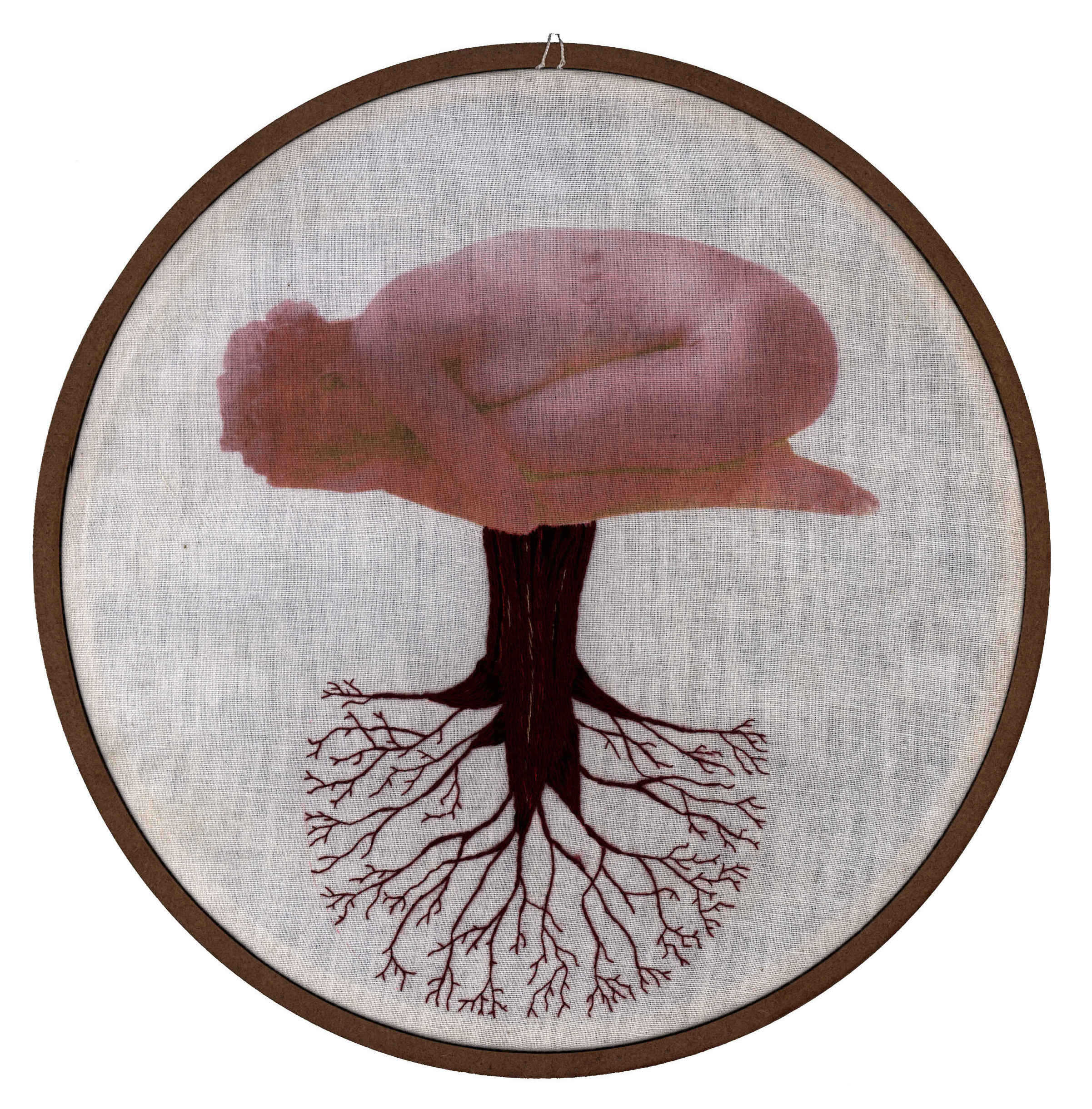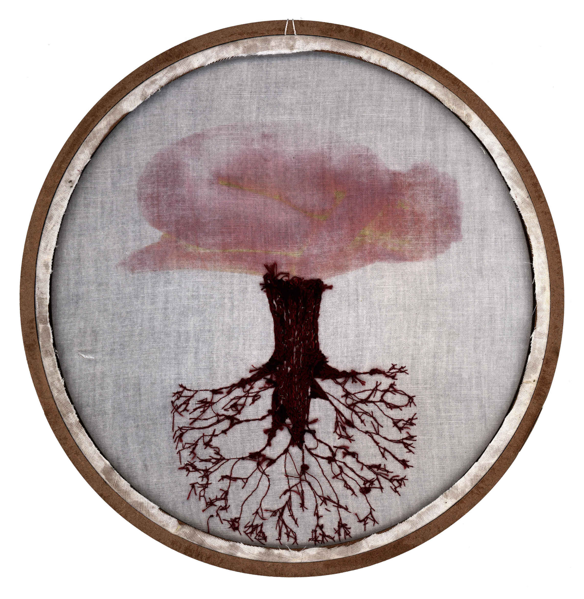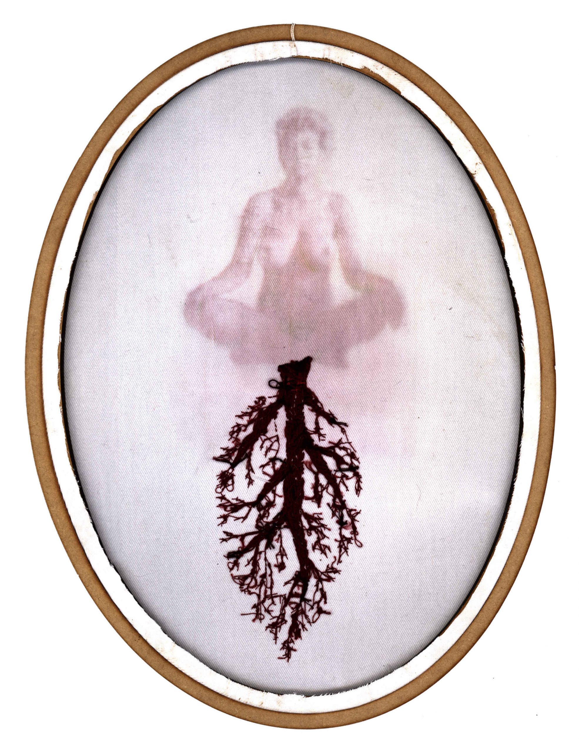 Por mais que o bordado possa, sim, produzir resultados bastante grandes, e ainda possa ser muito explorado como técnica, a idéia da monumentalidade pode não ser o desejo das artistas e artesãs. Muitas vezes nos dedicamos por horas e o resultado são alguns centímetros. E tudo bem. Esse gesto pequeno, essa ferramenta que habita a ponta dos dedos, esse bastidor bem pertinho de nós; fazem parte de um processo íntimo, mas também delicadamenteintenso, que reflete em momentos de diálogo consigo mesma, proporcionando um processo poético diferente de muitas outras formas de arte. Não queremos distância e contemplação; queremos proximidade, tato e textura, e isso faz toda a diferença. A ideia de que o bordado só serve para produzir objetos decorativos e estampas florais foi ideologicamente produzida, a fim de invisibilizar as técnicas desenvolvidas por mulheres e seu papel na sociedade. Eu acredito que trazer a figura da raiz também desafia essa concepção. Primeiro porque a raiz, na maioria dos casos, não está à vista. Ela diz respeito a coisas que acontecem para além de onde os olhos alcançam, se lançando por um mundo desconhecido, um mundo avesso. Elas trazem a ideia de que há muito mais das coisas do que podemos ver, e que existe todo um fluxo silencioso essencial para existência das coisas.