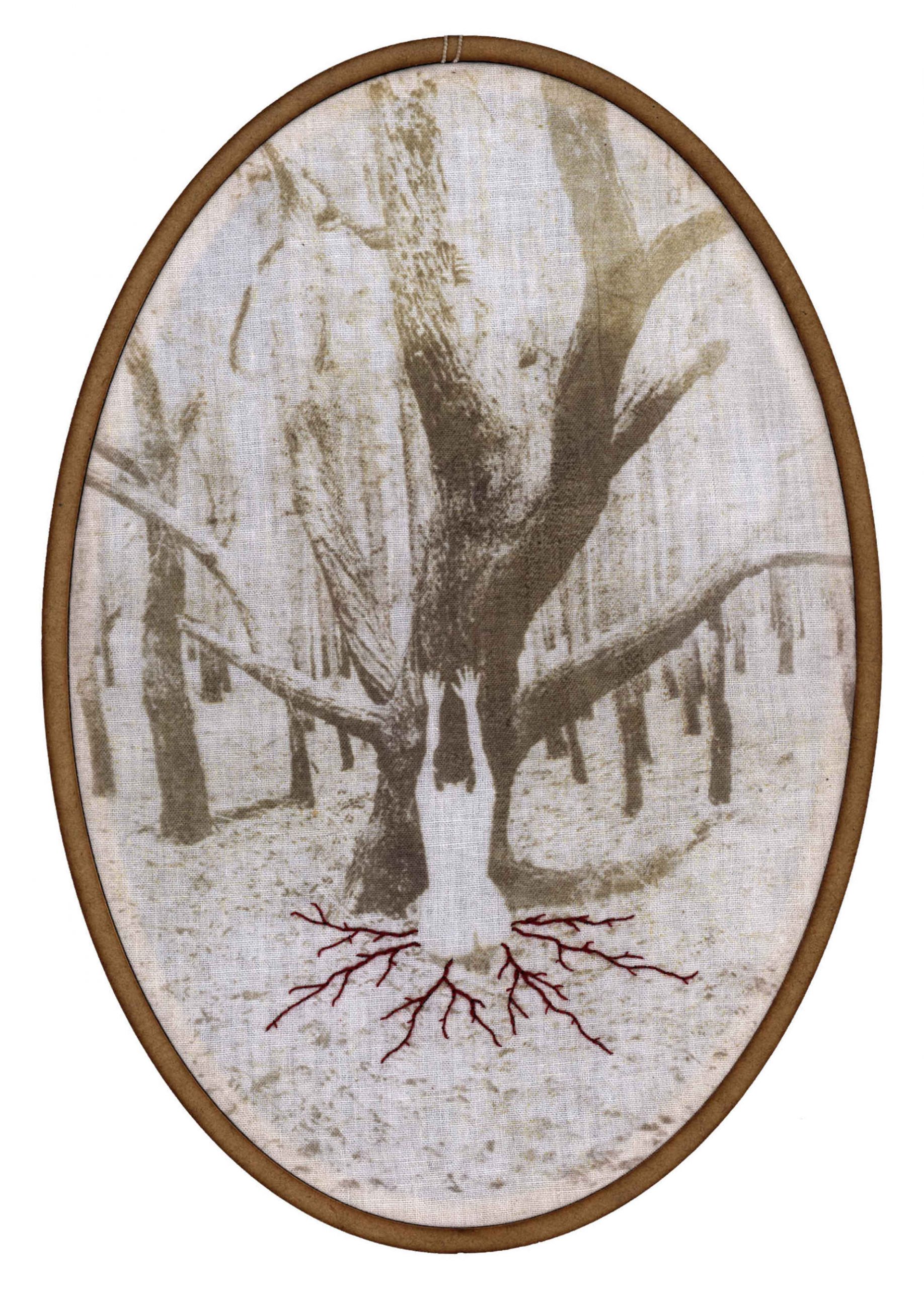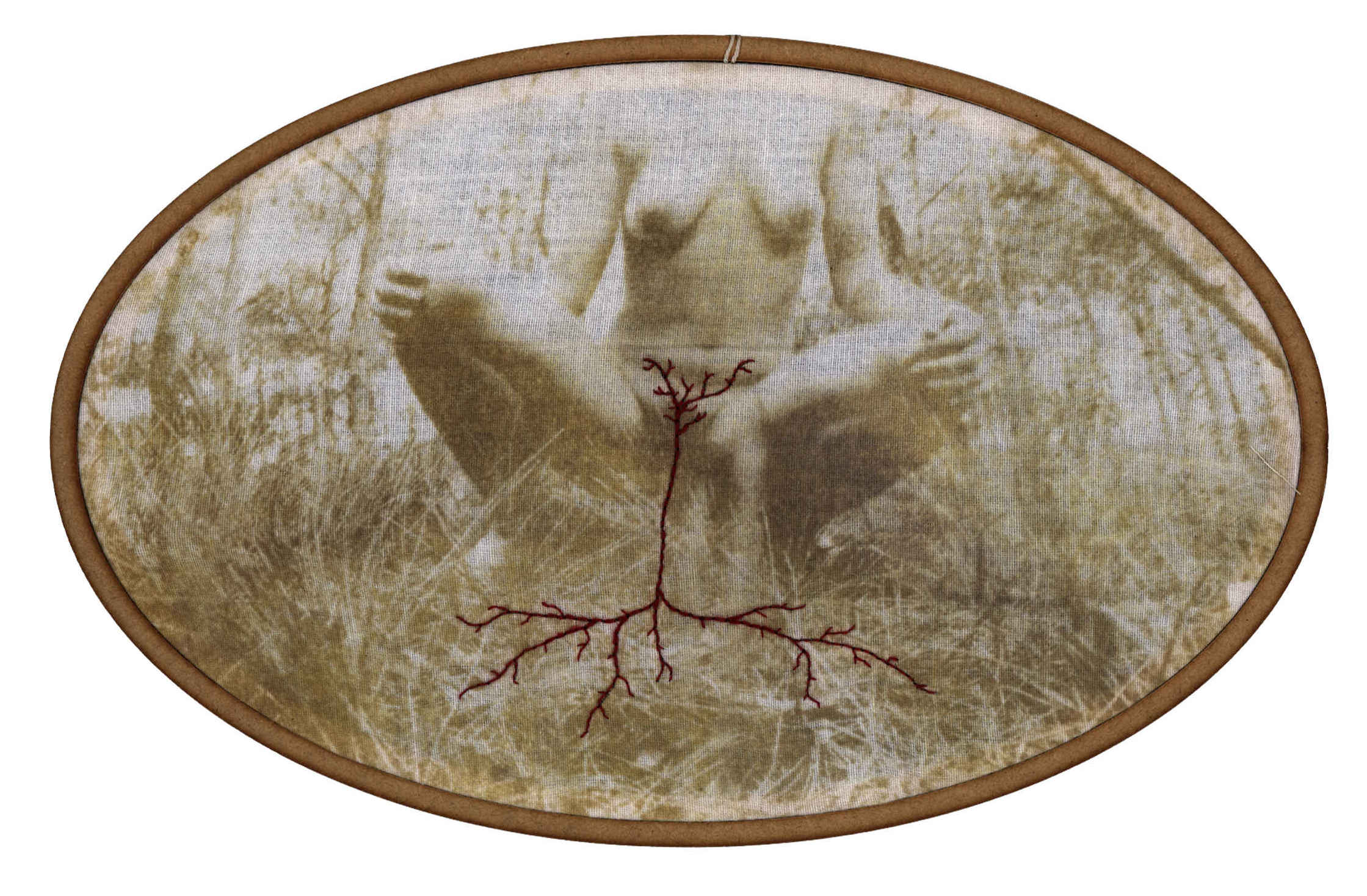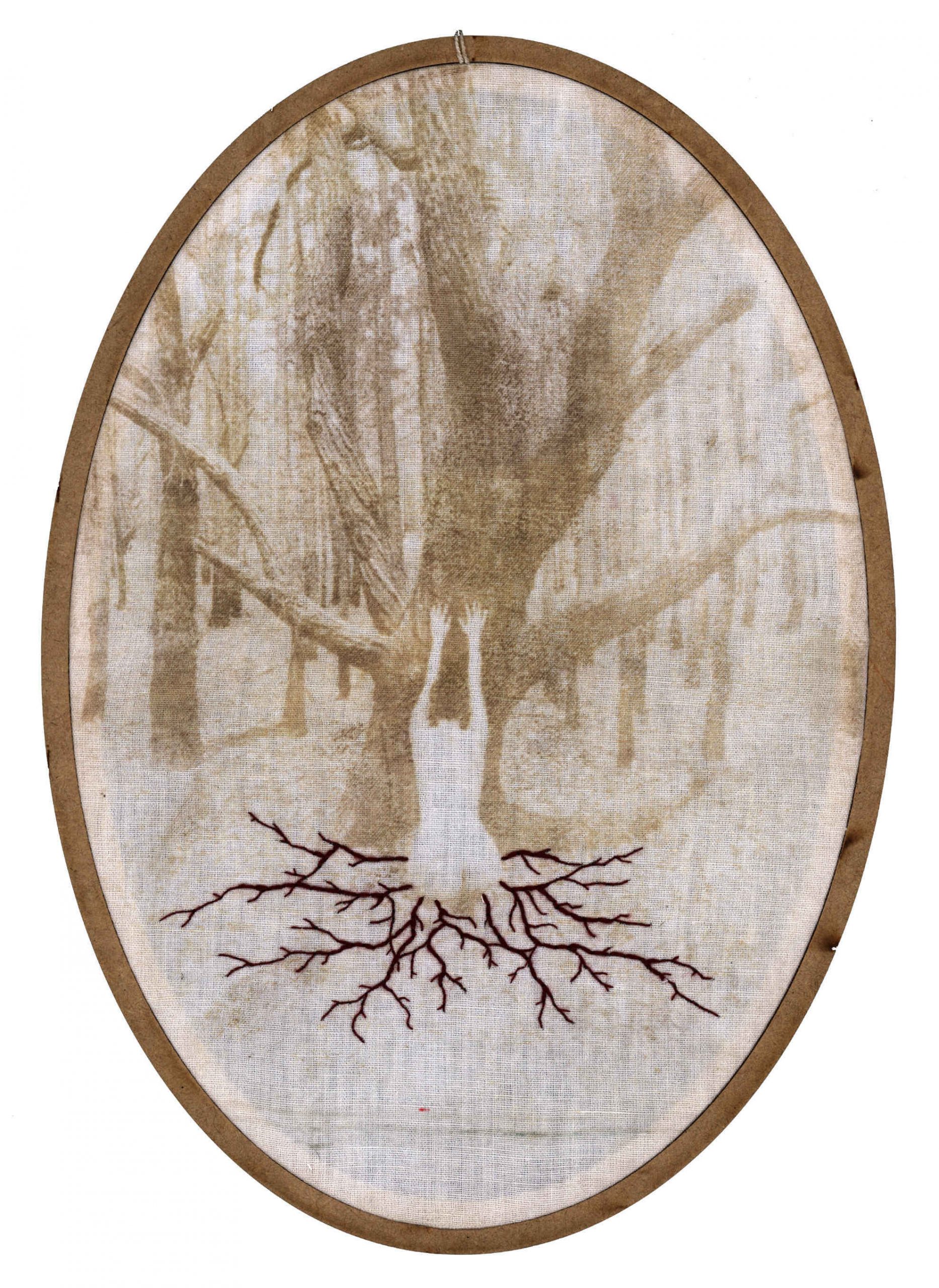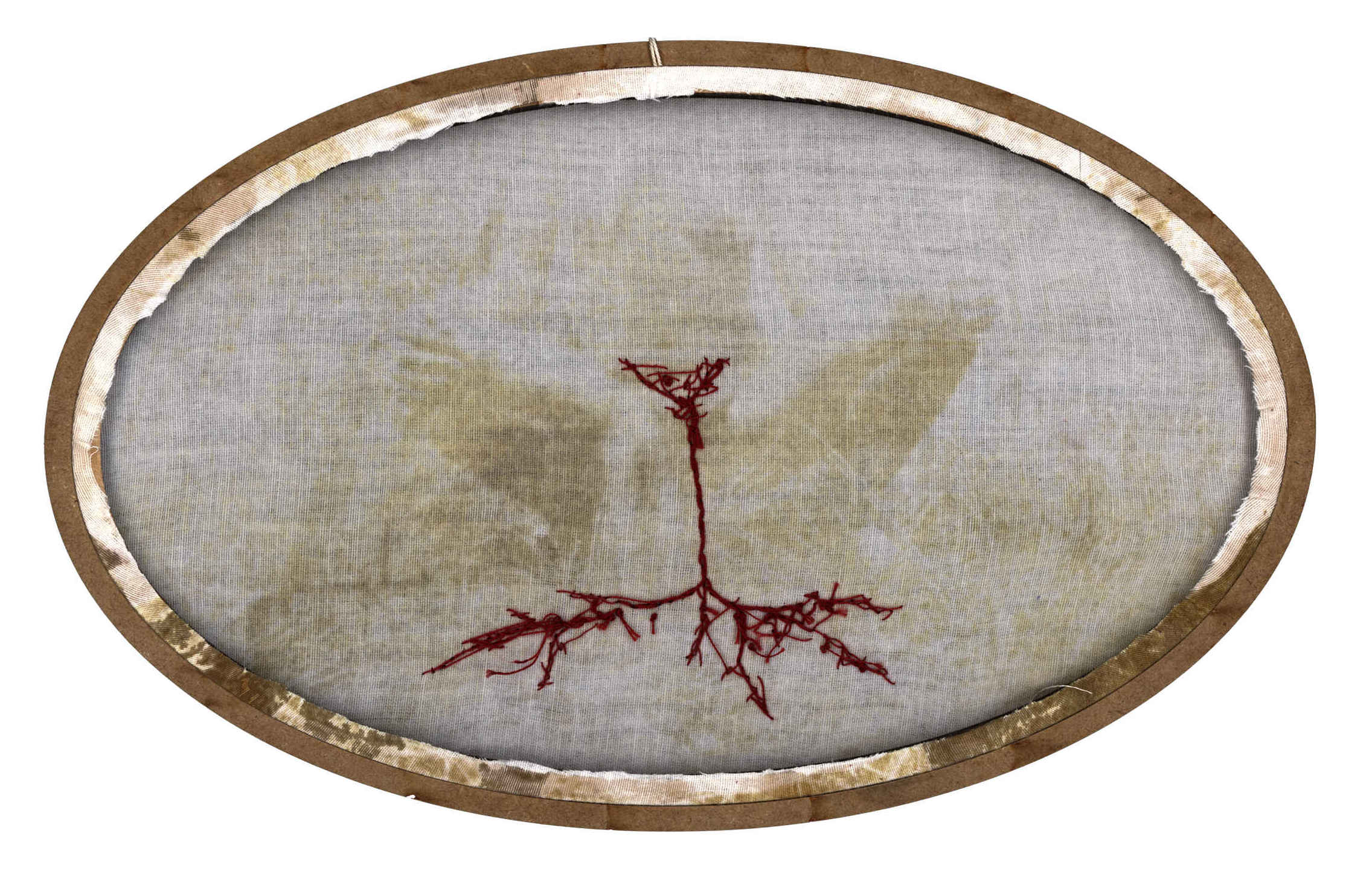 Por mais que o bordado possa, sim, produzir resultados bastante grandes, e ainda possa ser muito explorado como técnica, a idéia da monumentalidade pode não ser o desejo das artistas e artesãs. Muitas vezes nos dedicamos por horas e o resultado são alguns centímetros. E tudo bem. Esse gesto pequeno, essa ferramenta que habita a ponta dos dedos, esse bastidor bem pertinho de nós; fazem parte de um processo íntimo, mas também delicadamenteintenso, que reflete em momentos de diálogo consigo mesma, proporcionando um processo poético diferente de muitas outras formas de arte. Não queremos distância e contemplação; queremos proximidade, tato e textura, e isso faz toda a diferença. A ideia de que o bordado só serve para produzir objetos decorativos e estampas florais foi ideologicamente produzida, a fim de invisibilizar as técnicas desenvolvidas por mulheres e seu papel na sociedade. Eu acredito que trazer a figura da raiz também desafia essa concepção. Primeiro porque a raiz, na maioria dos casos, não está à vista. Ela diz respeito a coisas que acontecem para além de onde os olhos alcançam, se lançando por um mundo desconhecido, um mundo avesso. Elas trazem a ideia de que há muito mais das coisas do que podemos ver, e que existe todo um fluxo silencioso essencial para existência das coisas.