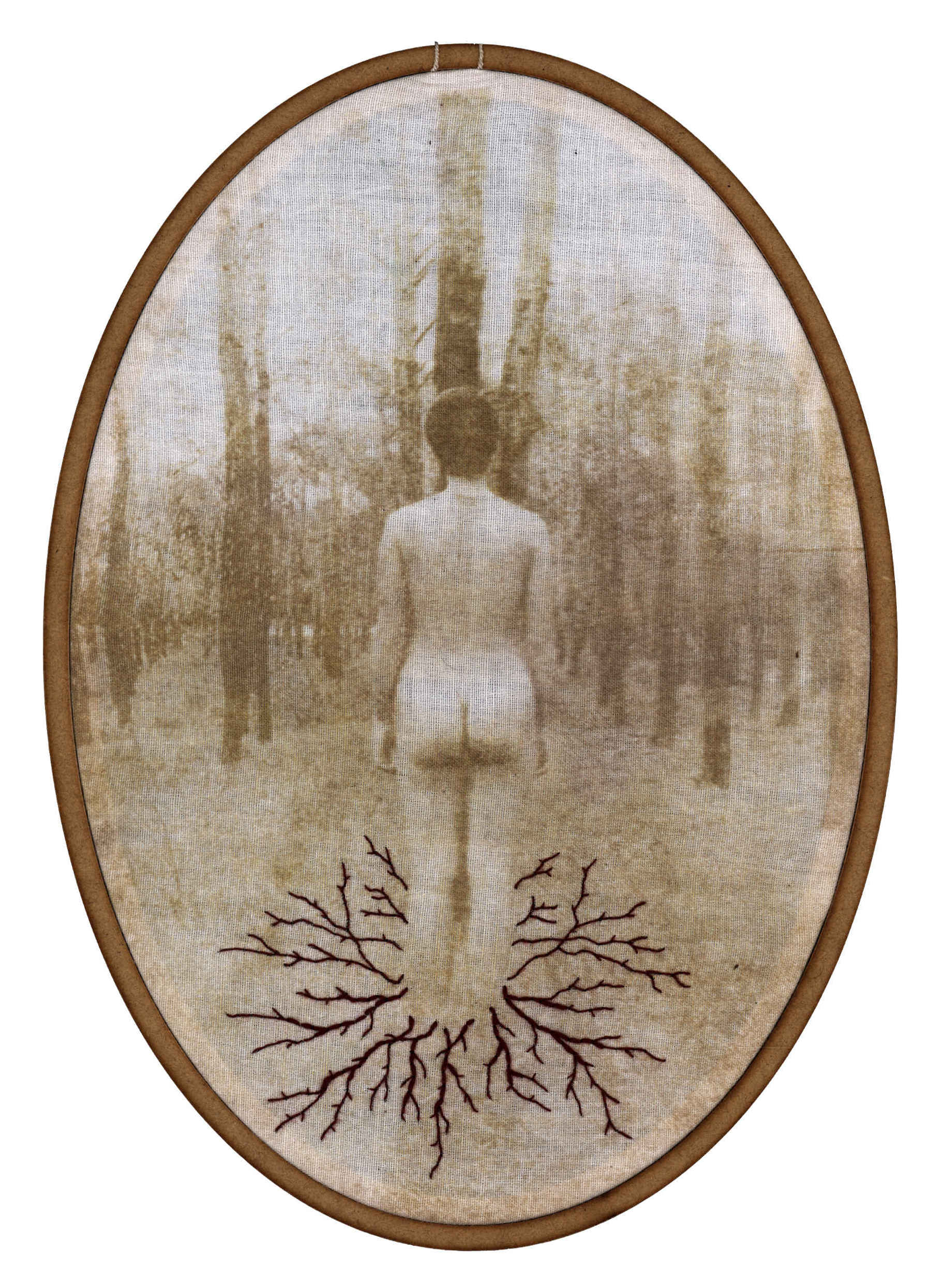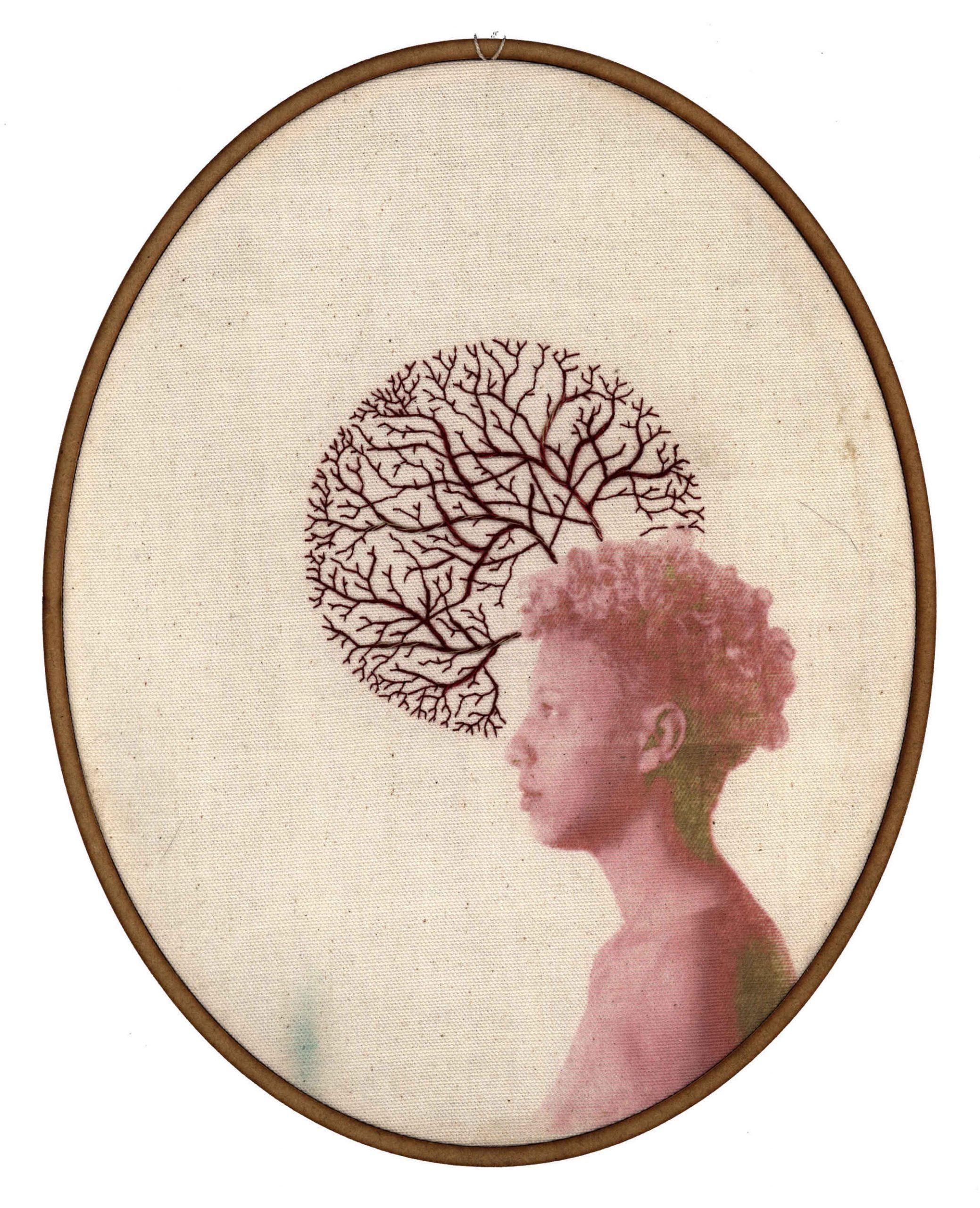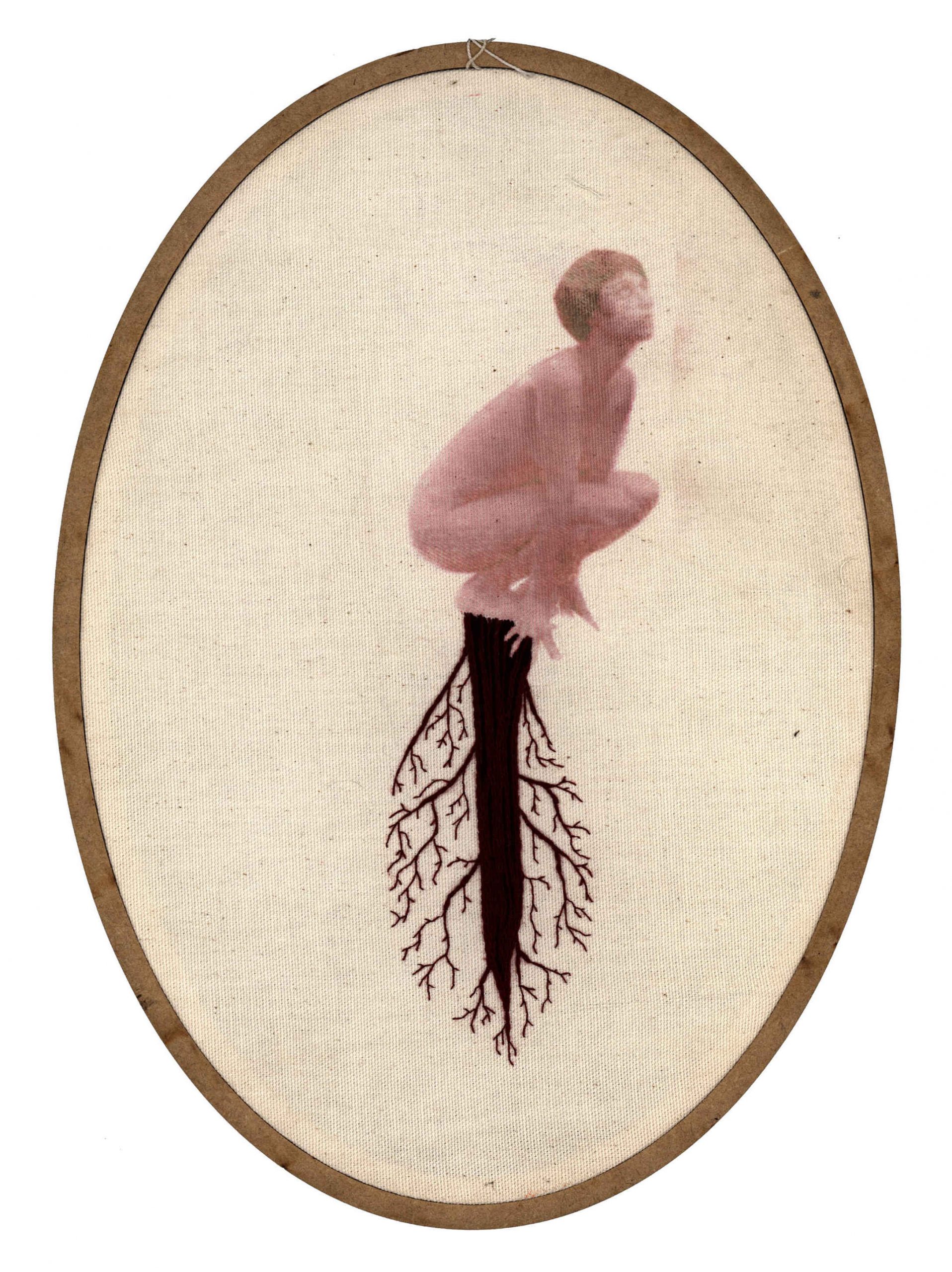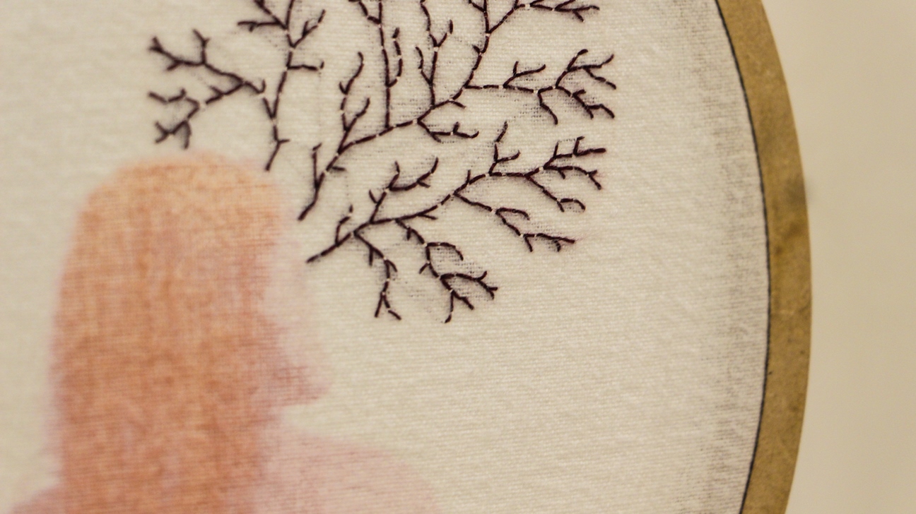 O corpo é o local onde acontecem as coisas. É nele que se dão os processos, materialmente, quando entra a linha, e interfere, imprime, refaz; e também num campo subjetivo, como um lugar avesso, invisível, onde esse tempo de bordar possibilita uma imersão em si, uma procura. A interferência do bordado sobre esse território faz parte de um processo de ressignificação, de retomada desse lugar de pertencer, onde a linha e a agulha entram delineando afetos, inscrevendo os processos que o corpo passa. Assim, penso que quando bordo sobre mulheres, viro mulher. De alguma forma, transbordo. Penso no bordar como o fator que entra no meu trabalho para desafiar o olhar, e ressignificar o corpo. Tanto o que borda, que tateia, que olha com atenção, que se propõe a mergulhar em uma imagem – como também o que é representado, que possui direito e avesso e raízes que se espalham por si mesmo. Quero representar mulheres que se aventuram por si, resistindo, retomando poder sobre esse local, e se maravilhando com a quantidade de vida que existe nesse avesso de si.