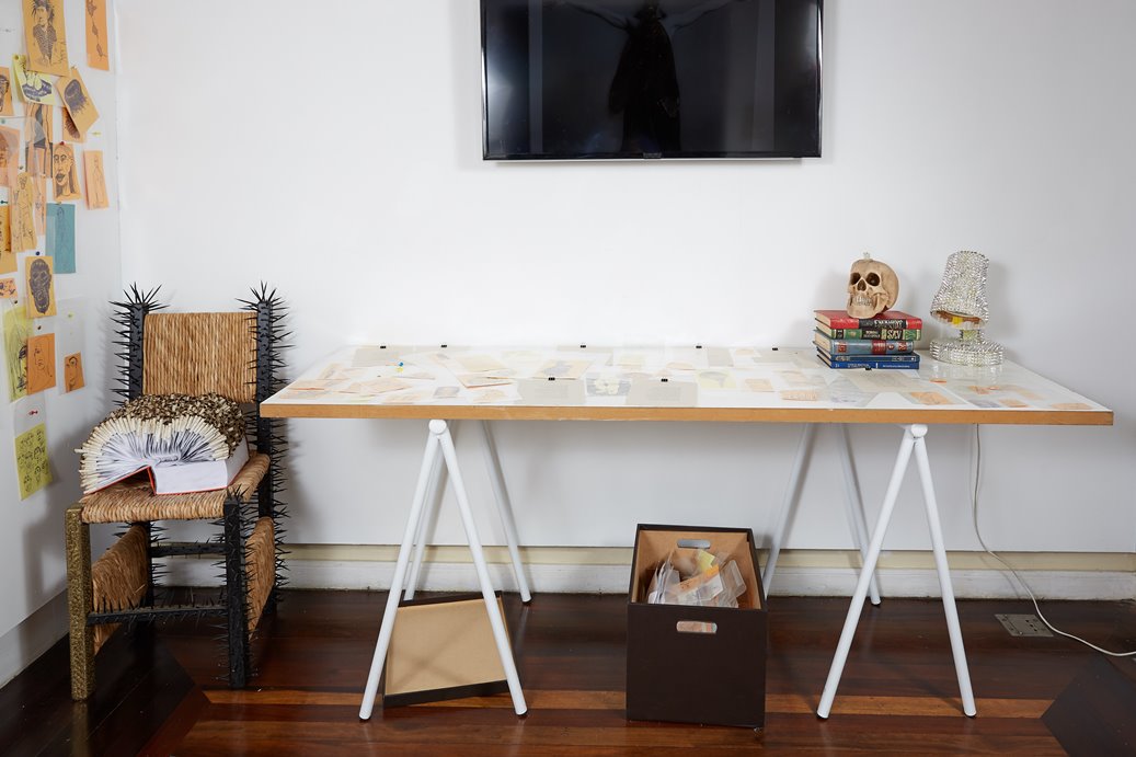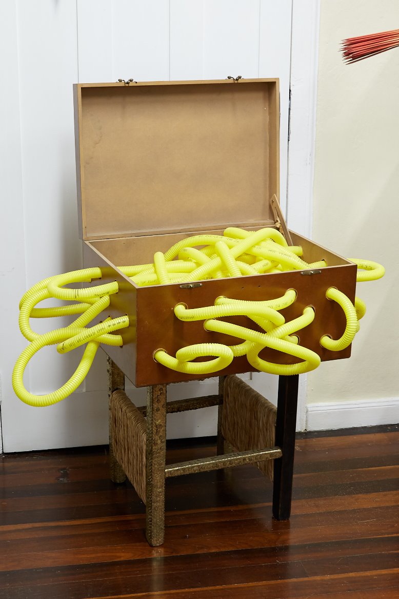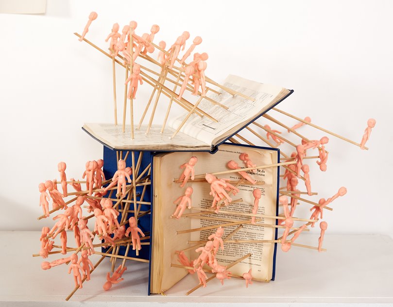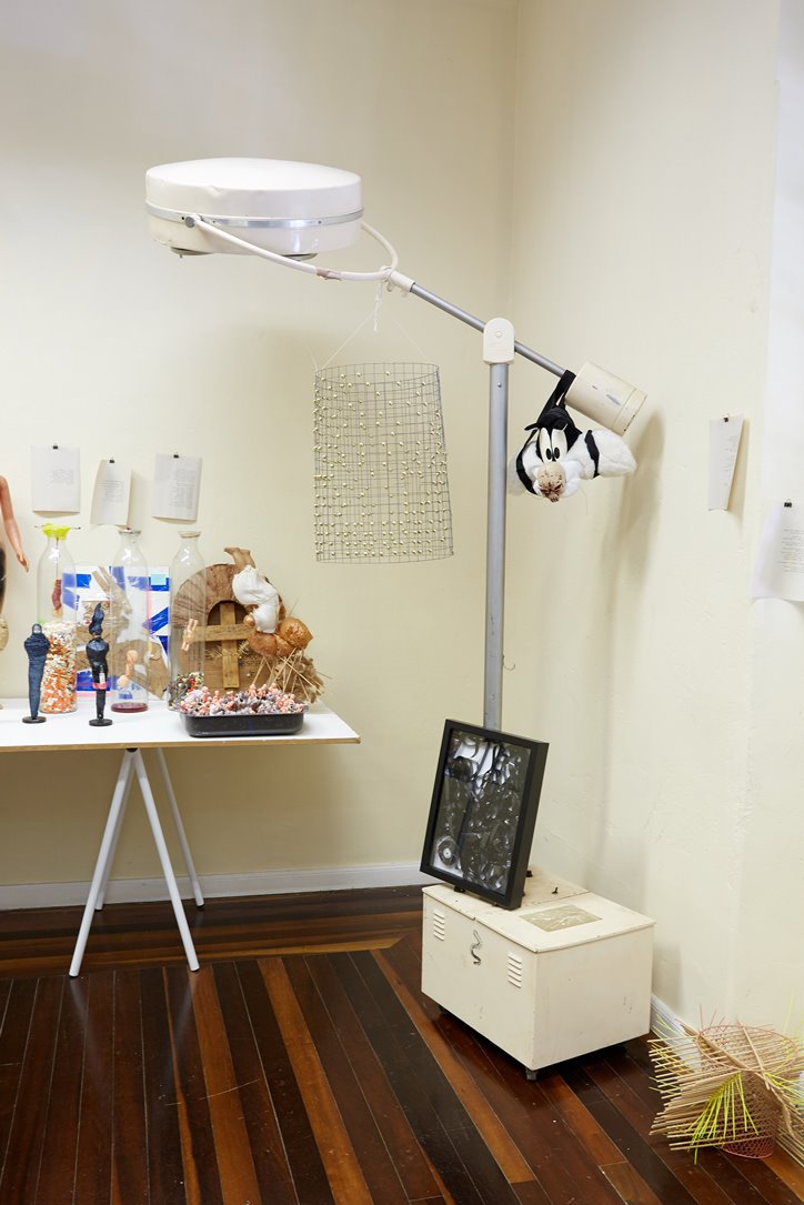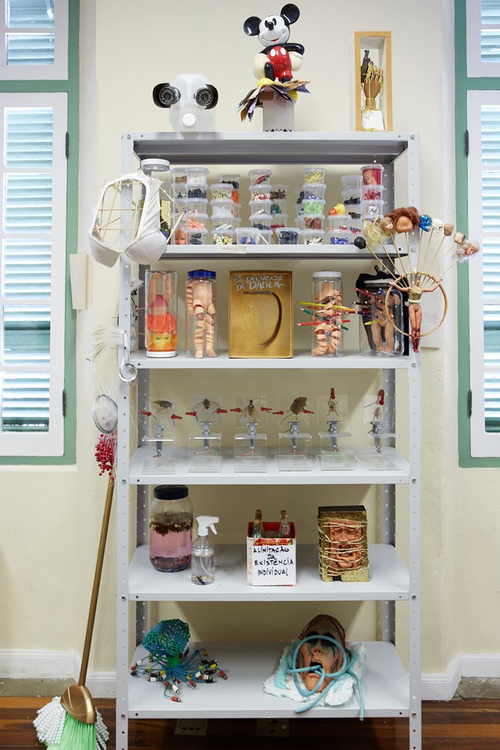 Sérgio Canfield (Paranaguá, PR-1958) conta ter sido um menino que colecionava figurinhas e acumulava objetos que lhe pareciam peculiares, fazendo experimentos sem muitos interditos morais. Formou-se em medicina pela UFPR e especializou-se em cirurgia geral nos mesmos anos 80 em que desenvolveu um fazer artístico autodidata, passando a exercer suas atividades profissionais e a se apresentar em exposições coletivas e individuais entre PR e SC, concomitantemente. Seus desenhos, pinturas, escritos, vídeos, fotografias, objetos e instalações contêm entendimentos retirados de episódios testemunhados, protagonizados, percebidos e/ou lembrados. Buscando uma incansável experimentação, recusa o conforto do mero domínio técnico e privilegia um estado de protótipo ou esboço, onde o imperfeito e o incompleto se destacam. Entre os principais gestos que persistem em sua obra, estão os relacionados a cortar, amarrar, espremer, suspender, espetar, torcer, reverter. Há também uma compulsão pelos rascunhos e anotações, onde registra o comportamento humano com seus transtornos e peculiaridades. A partir de tais recursos o artista interroga a vida, a materialidade dos corpos e o destino dos mortais. Sobretudo, considera as diferentes camadas que vinculam os humanos às coisas e aos animais. Reconhecendo em cada forma e estrutura um corpo vinculante, relaciona o orgânico ao inorgânico, através de uma obstinada e proliferante criação de objetos- seres oriundos de materiais reaproveitados e metamorfoseados. A presente exposição ocupa todos os espaços da FUNDAÇÃO CULTURAL BADESC. No piso térreo encontra-se a GALERIA, onde são apresentados retratos figurativos ou alusivos, através de pinturas em tela, cartolina e prancheta, contrapostos a cabeças- anêmonas- medusas, feitas com fitas de VHS usadas em exames de laparoscopia. No piso superior encontra-se a BIBLIOTECA, cujos livros de artista estão dispostos em prateleiras com escritos e desenhos em estado de notas preliminares e contumazes, além de um vídeo com a foto de um corpo humano imóvel, sobreposto por um inseto agonizante. Em outra sala do segundo piso, encontra-se o LABORATÓRIO, em cujas estantes e mesas estão as naturezas- mortas com toda sorte de artificialias, tais como remédios vencidos, objetos desatualizados, êmbolos, toy art e conservas, compondo um conjunto inusitado e perturbador. Relacionando e complementando estes ambientes, pelas varandas, hall e corredores, além do jardim, encontram-se os implementos- apetrechos, compostos por textos, ornamentos e objetos inoperantes.