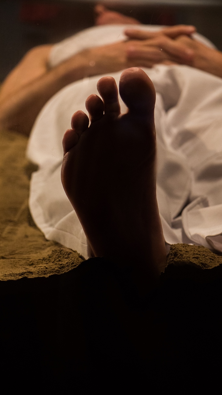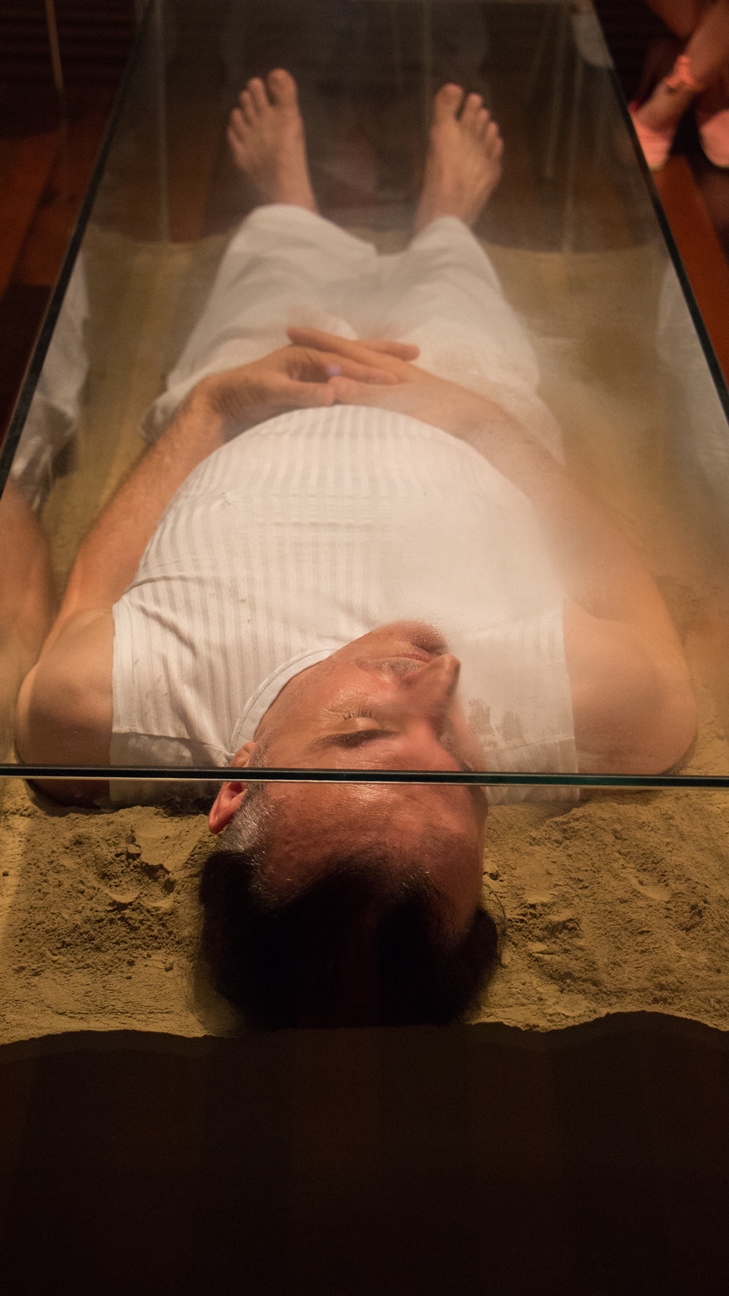 Suas performances implicam ter um pedaço de si no outro e do outro em si; instala-se um entre nesse corpo-paisagem. O corpo ausente permanece como memória, como impressão, como resquício. Há um certo tipo de toque que não toca que está em plena deriva e que escapa. Uma luz que penetra nos olhos entreabertos, na sensação ímpar do corpo-de-sonho, entre a confusa percepção de estar acordado ou dormindo. Reter essa experiência é compreender que ela é porosa. É um outro tempo do qual não estamos mais habituados, uma construção lenta, poética. O mundo não se mostra como um cenário fechado, mas propõe novas fissuras, apresenta-nos faltas, numa afecção de infinitudes, uma tarefa sem fim, pois, em nossos corpos (meu, do público, do artista), as ressonâncias permanecem. Há um corpo que vibra sem necessariamente estar.