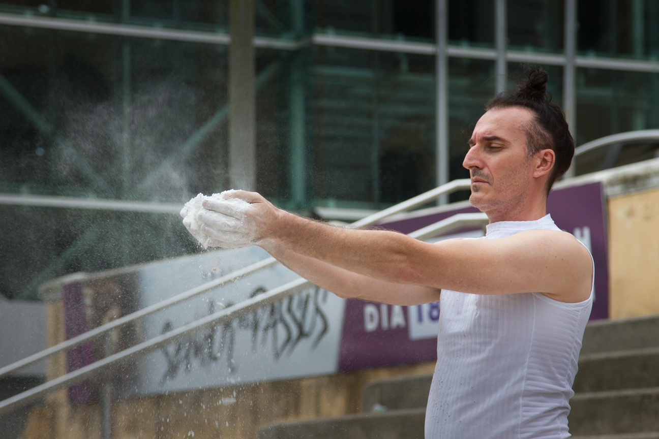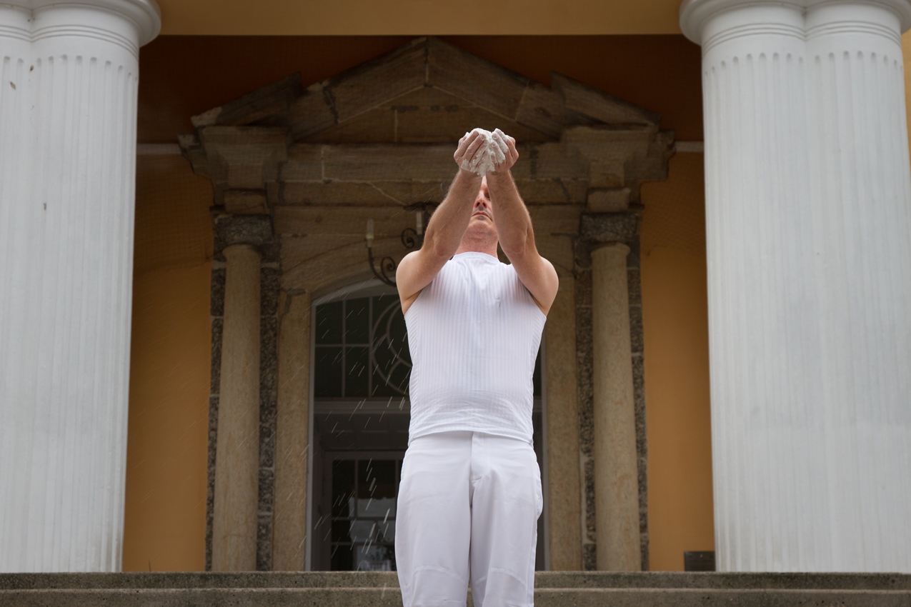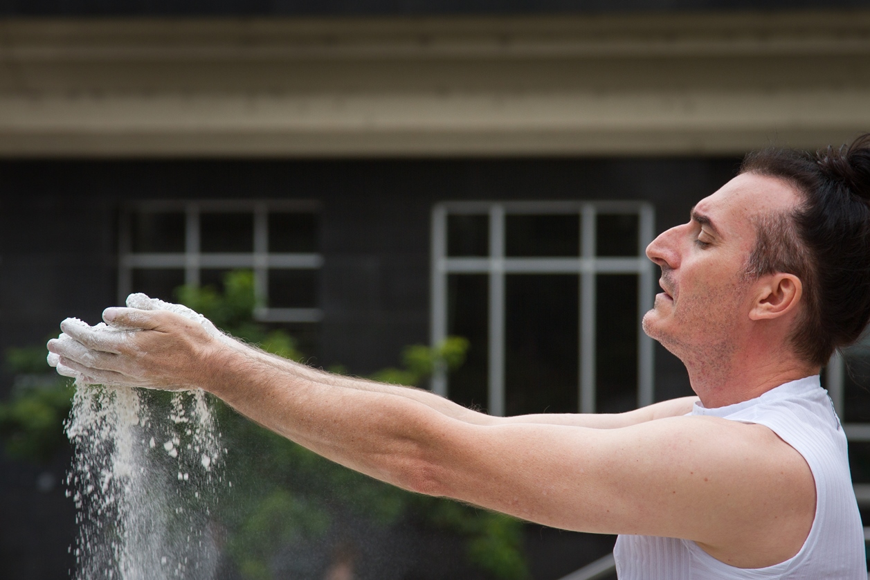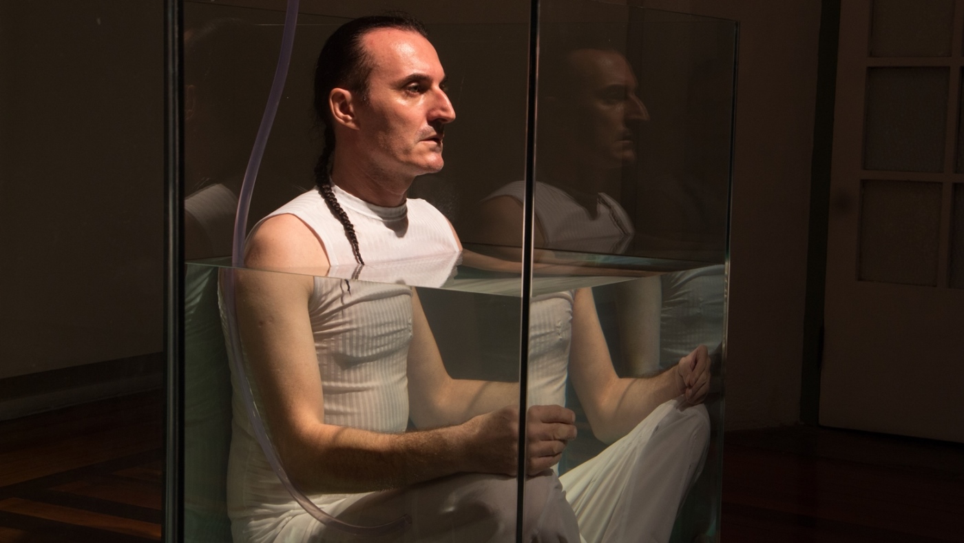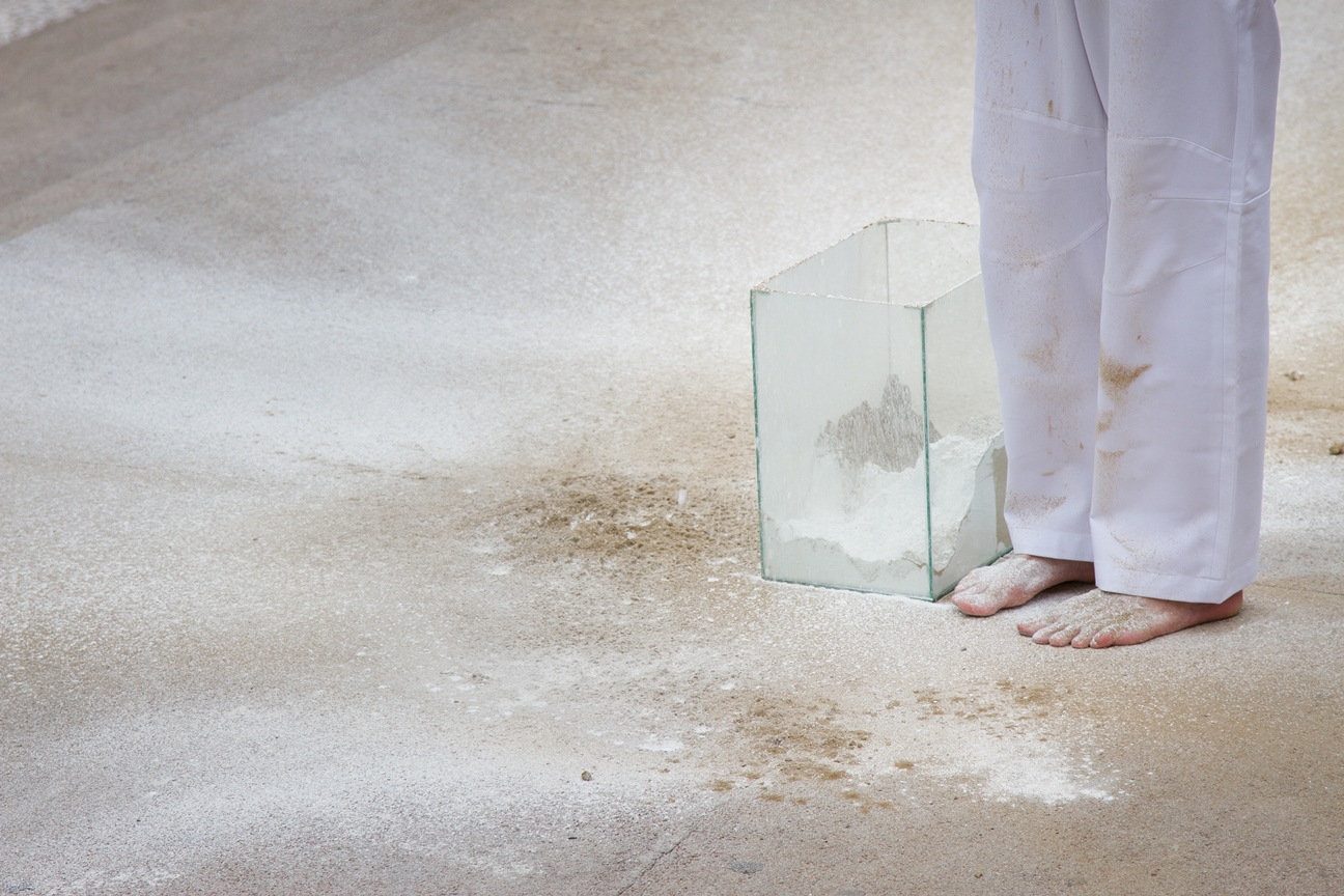 O valor do ser e do ter presentifica-se nas ações e entre os elementos que percorrem a obra do artista: talco, cinza, terra, café, pó de ouro, pó de prata, água, vidro, transparência, medidas matemáticas que são extensões do corpo; que parecem ser os vértices das performances.