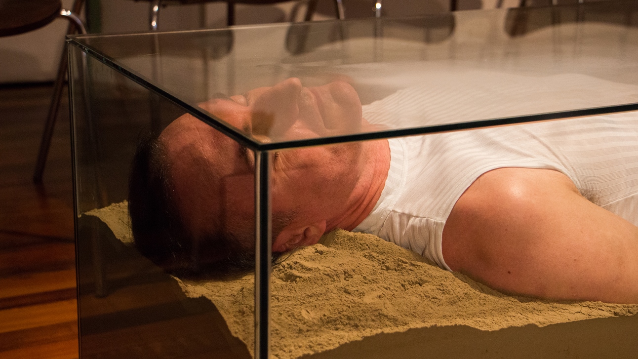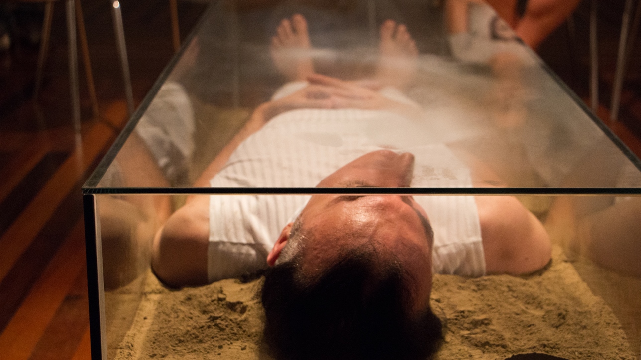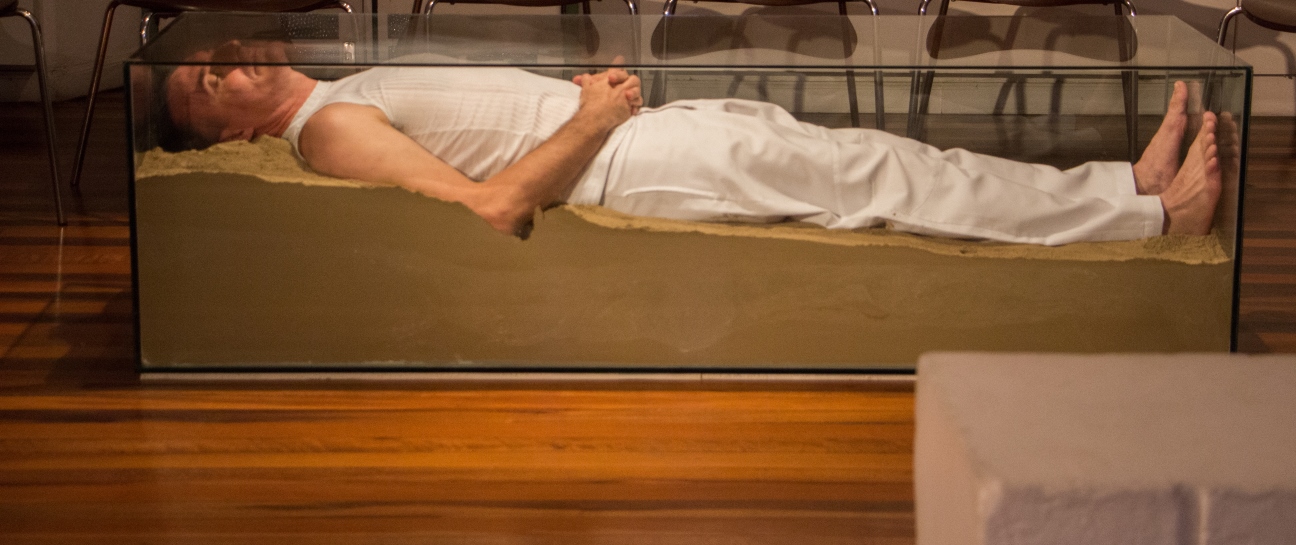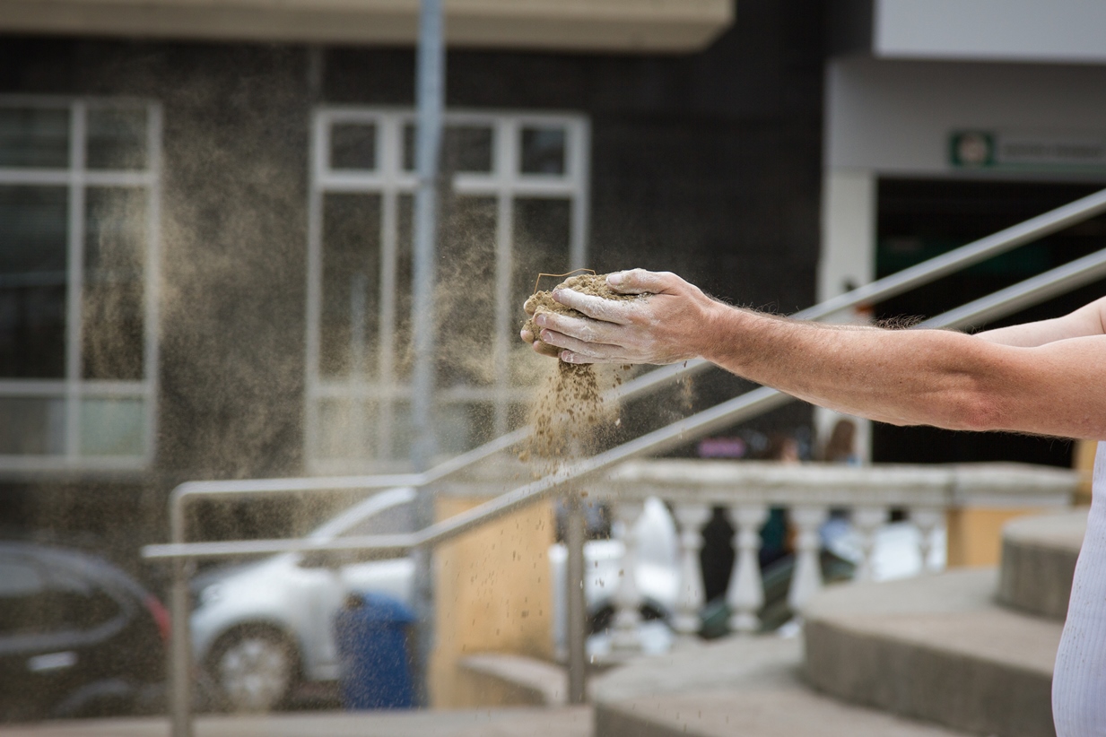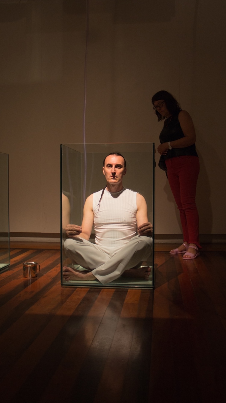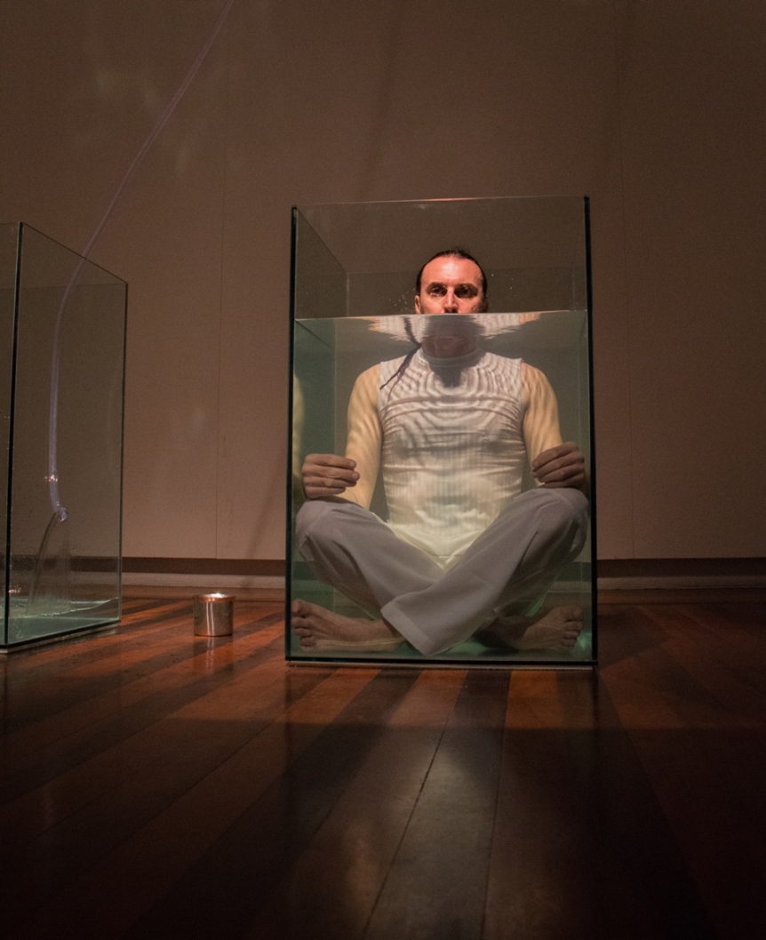 O valor do ser e do ter presentifica-se nas ações e entre os elementos que percorrem a obra do artista: talco, cinza, terra, café, pó de ouro, pó de prata, água, vidro, transparência, medidas matemáticas que são extensões do corpo; que parecem ser os vértices das performances.