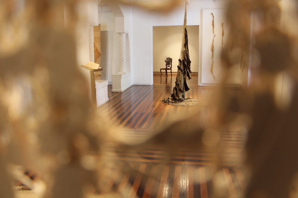 Através de uma série de objetos e tramas, nesta exposição surge uma compreensão de tempo em que coexistem efêmero e perene, presença e vestígio como atributos paradoxais.