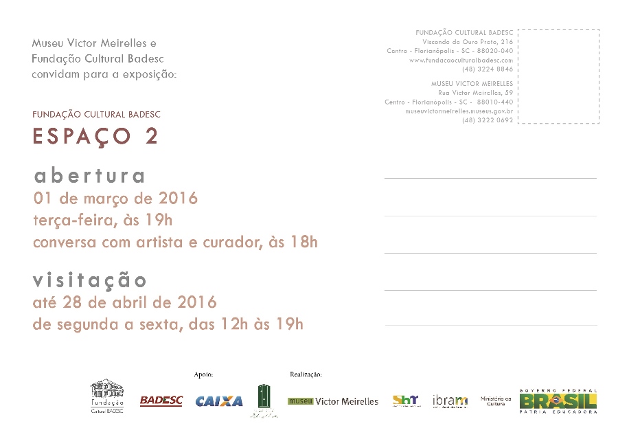Em homenagem ao artista Paulo Gaiad, reconhecidamente um dos mais importantes do Estado de Santa Catarina, a Fundação Cultural Badesc reinaugura o espaço expositivo no piso superior com o seu nome. Entre 26 de novembro de 2015 e 26 de fevereiro de 2016, a exposição Impossibilias: arquivo e memória em Paulo Gaiad ocupou todos os espaços da Fundação reunindo o maior número de obras do artista já expostas em conjunto. Esta foi a última exposição do artista em vida, que faleceu em outubro do mesmo ano. A reinauguração traz um dos vídeos que integrou esta exposição com um vídeo, duas obras inéditas do artista, além de uma série de imagens e textos que resumem a trajetória do Espaço 2 desde a sua criação, em 2014. Paulo Gaiad nasceu em São Paulo. Mudou-se para Florianópolis nos anos 1980. Foi Arquiteto e Desenhista. Sua produção contempla a pintura, o desenho, a fotografia, a instalação e a literatura.