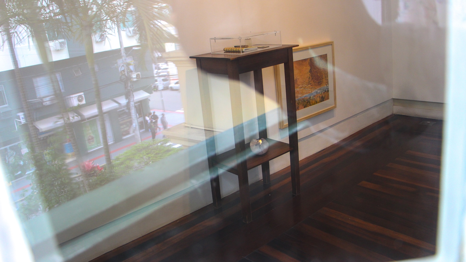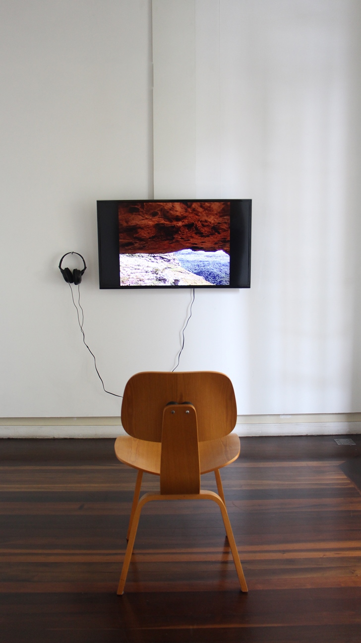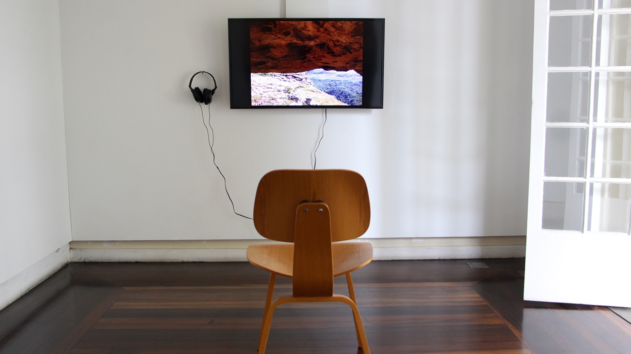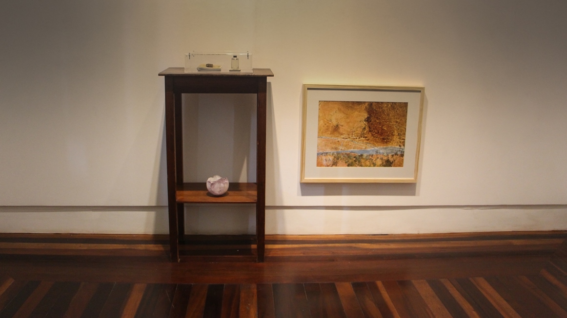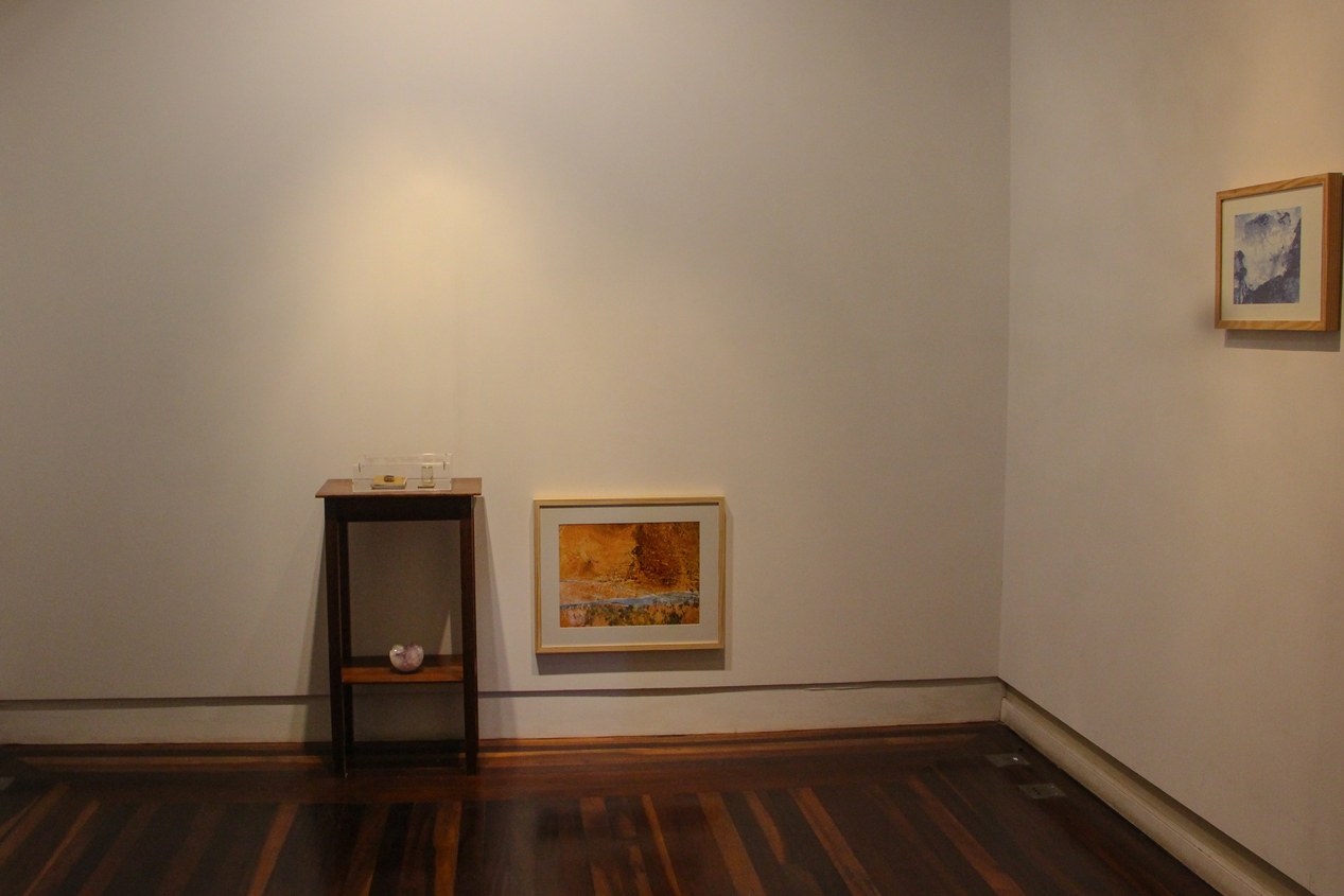 Um processo de inversão digital torna azulada a imagem captada na região do Cânion Guartelá, nos Campos Gerais e parece registrar um tempo longínquo. O cenário rochoso agora remete ao fundo do mar, que cobriu aquela região há milhões de anos; Um pequeno aparador traz uma pedra semipreciosa da Chapada Diamantina e uma caixa de acrílico fechada, numa sugestão de mistério. Dentro dela, flores secas dos Campos Gerais, um frasco de vidro do Arroio Pedregulho, pau santo, slides com registro de performance realizada nas margens do Cânion Guartelá e um caderno de viagem contendo relatos dos locais visitados; Um audiovisual com pouco mais de 23 minutos mostra imagens dos Campos Gerais, acompanhadas de trilha musical composta pelo músico Ühmas e do poema ¨Os Poros Flóridos¨, de Josely Vianna Baptista, que é lido pausadamente pela artista. Nesse diálogo, sem preocupação explicativa, entre as imagens e o poema, a artista busca uma aproximação da experiência original do momento vivido naquele local, naquele instante.