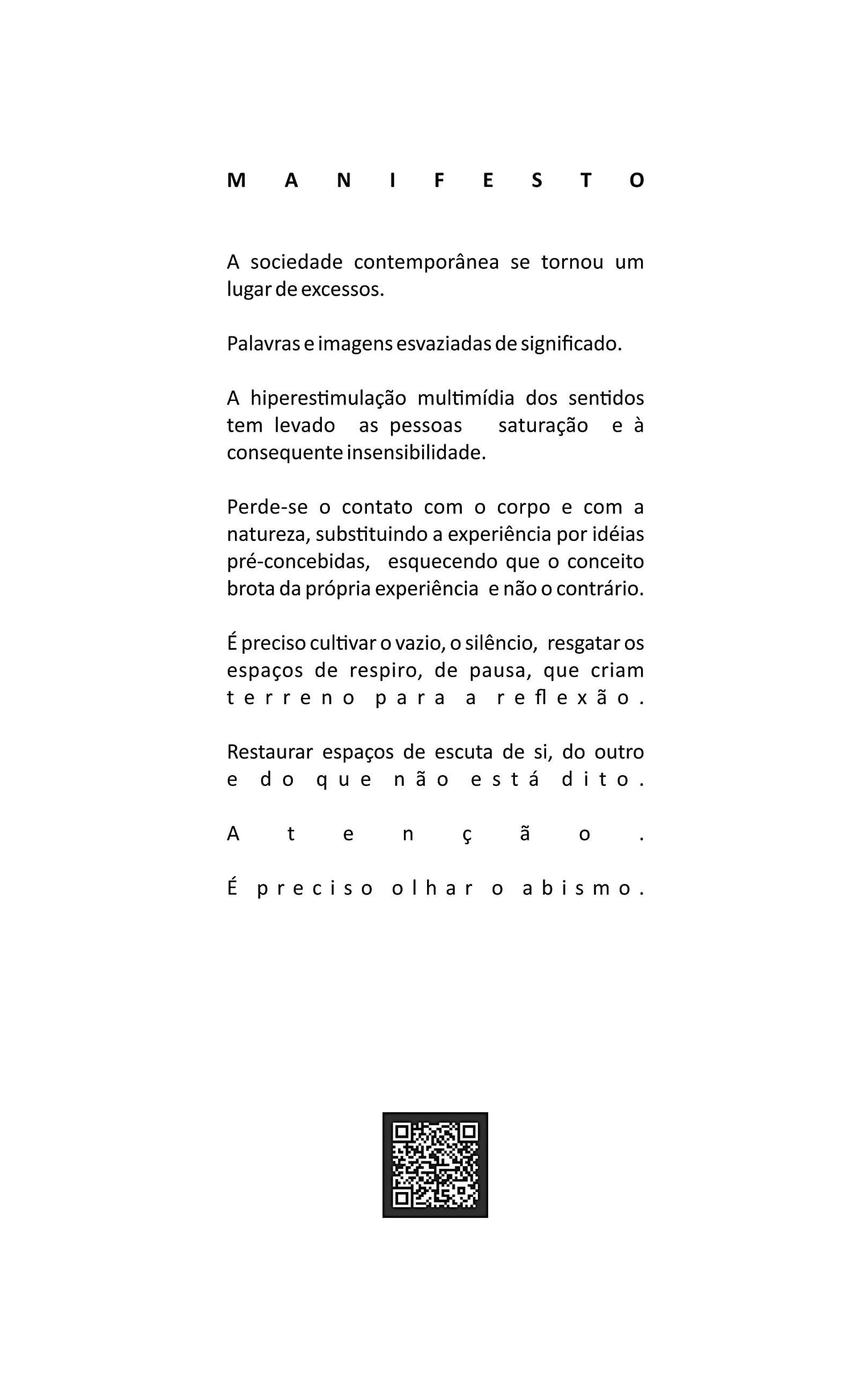 Mais do que representar uma paisagem, a artista a recria e a transpassa. As obras apresentadas emergem da necessidade que sente em revelar a epifania vivenciada em 2014 quando visita a Chapada Diamantina (BA) e Campos Gerais (PR), envolvida em um outro projeto artístico. As sensações provocadas pelo abismo, silêncio e natureza em estado bruto transcendem conceitos e dão início ao seu processo de amalgamar elementos que a auxiliem a expressar um sentimento possível. Assim, vai acumulando expressões, imagens, poesia, música, objetos retirados da cena. Do entrecruzamento da imagem e palavra, da reorganização da fatura, da experimentação de transpor o cenário da natureza para a galeria, emerge sua reflexão poética à beira do abismo e imersa nas paisagens planálticas. Maria Baptista é graduada em Arquitetura e Urbanismo pela Universidade Federal do Paraná, estudou escultura na Escola de Belas Artes do Paraná e especialização em Poéticas Visuais pela mesma Instituição. Atualmente vive em Curitiba/PR.