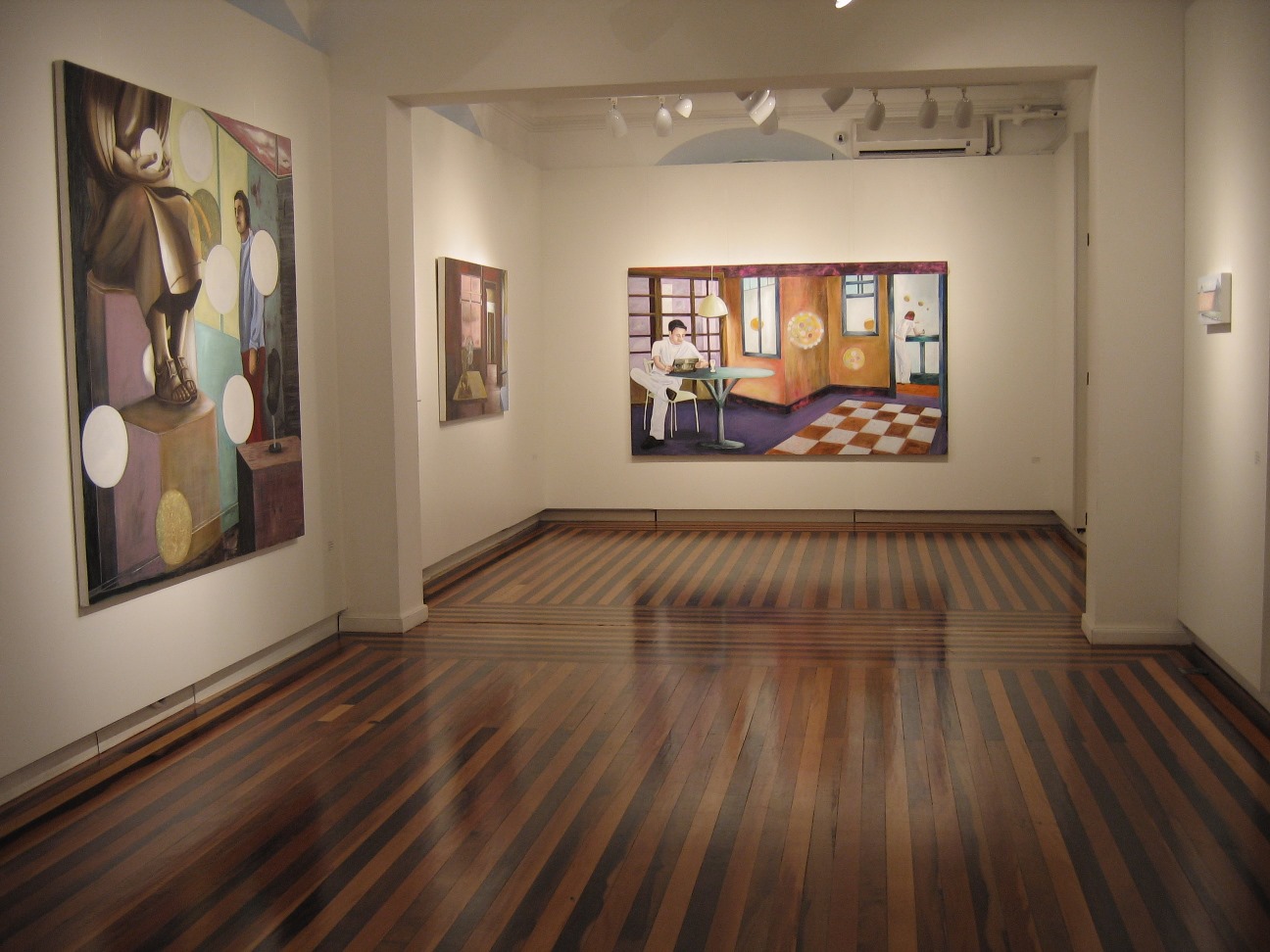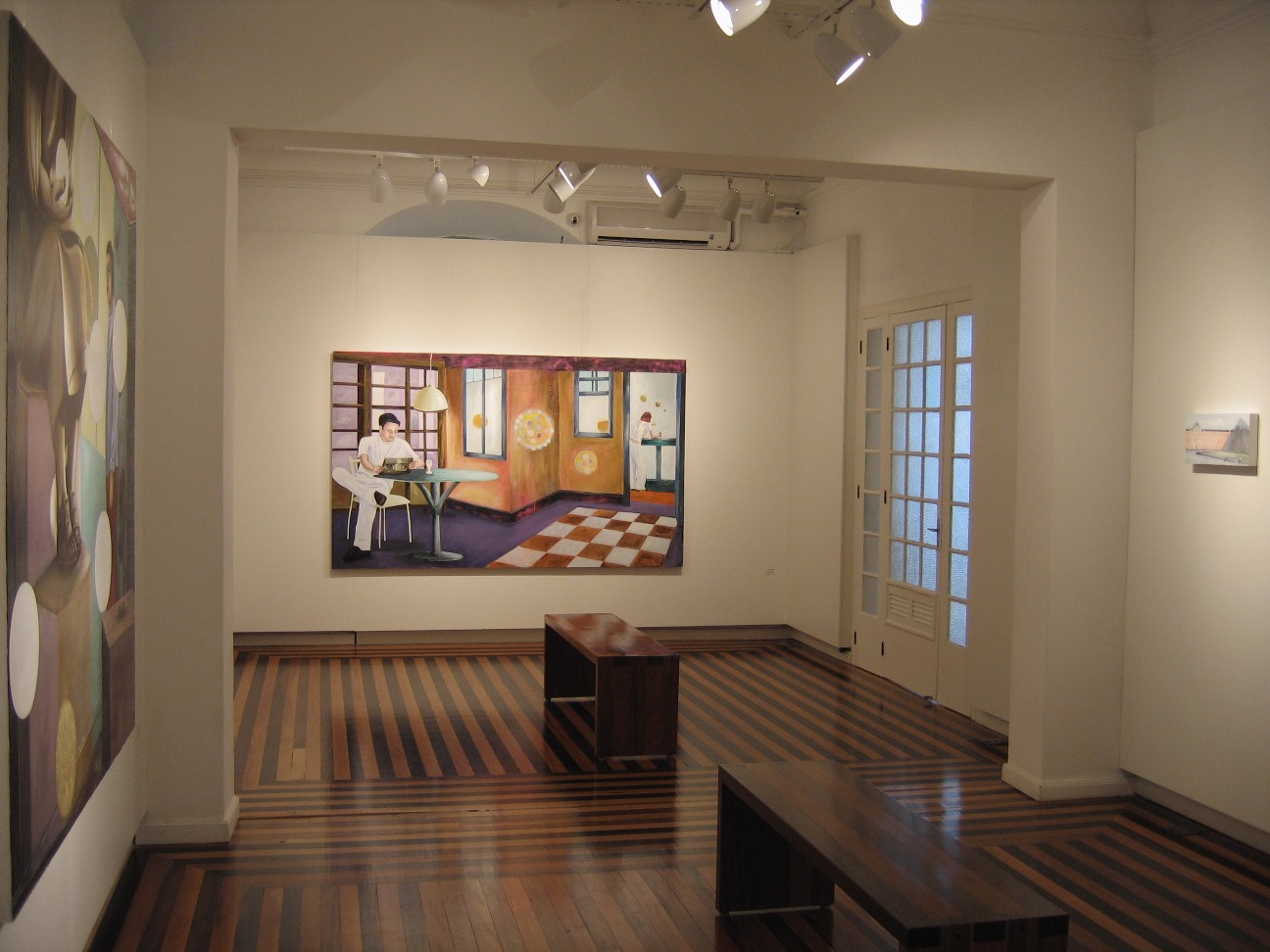 Débora Steinhaus sente-se mais à vontade com grandes formatos. Aí o espaço ampliado nos permite verificar melhor como nada flutua e como, no meio da luz explícita, raramente dramática, o teor introspectivo cede a uma relação matemática (por certo empírica) que lembra os pintores holandeses do século XVII (De Hooch), e também por estranho que pareça, Mondrian, que nesse particular aspecto, é bom intérprete daqueles.