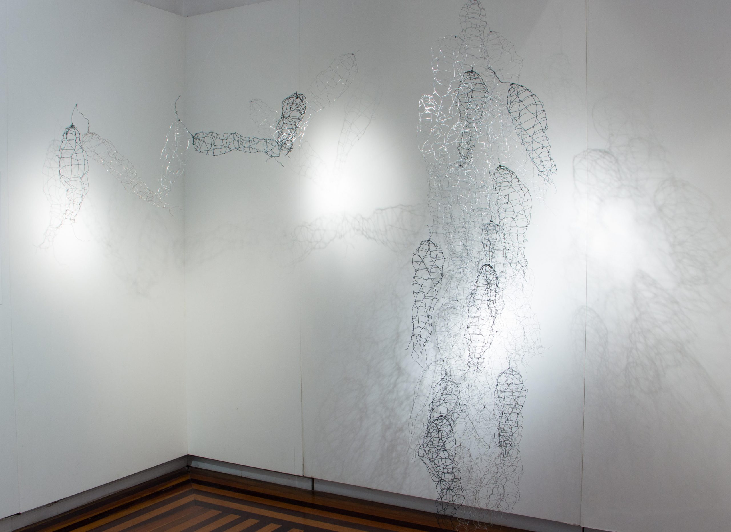 Corpolinha, Anna Moraes, 2019. Instalação em arame, 50x20x15cm e 70x130x45cm.