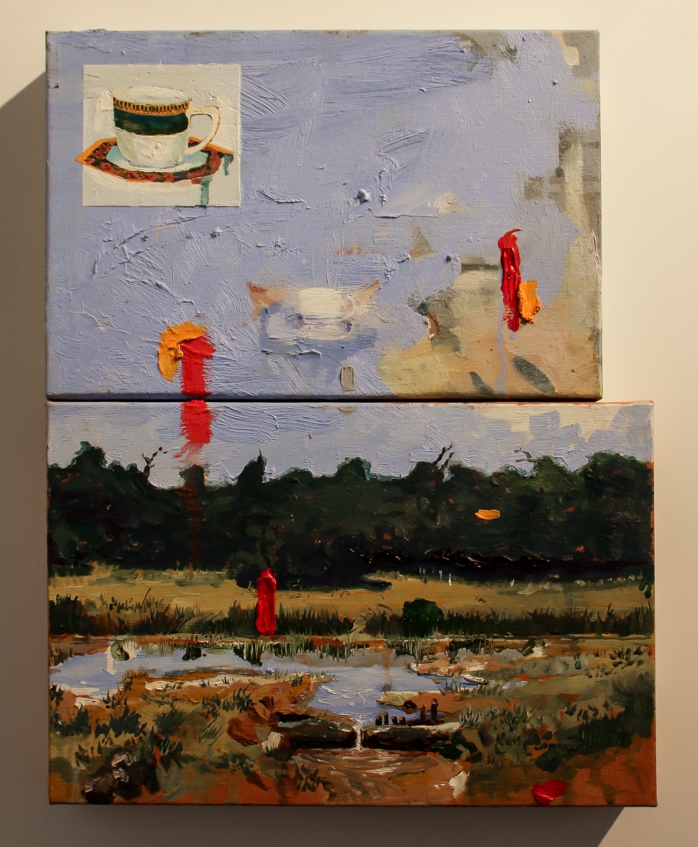 Pendente na paisagem, 2015. Óleo sobre tela díptico, 20x30cm e 30x20cm.