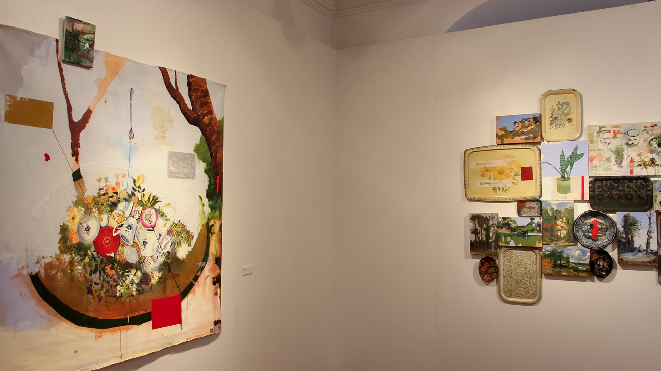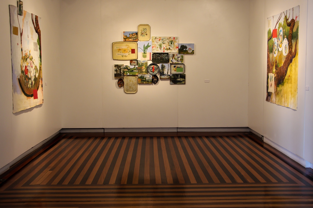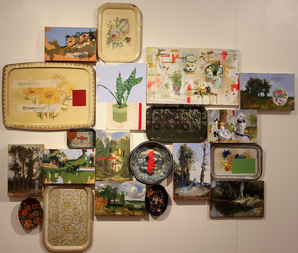 Lição de pintura, bandejas e pinturas, 2015. Dimensões variáveis.