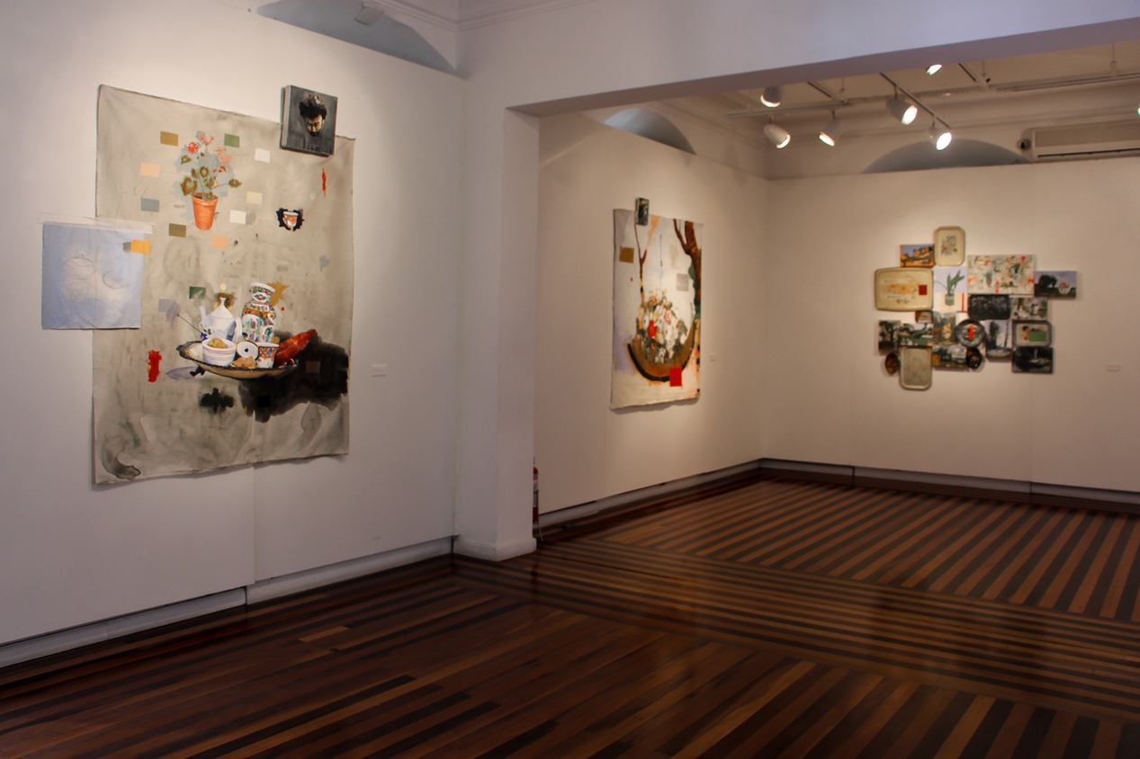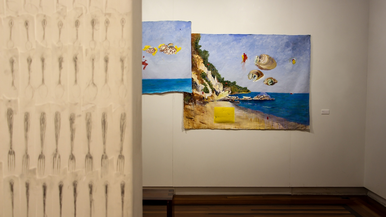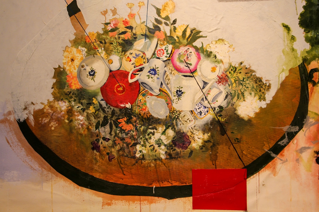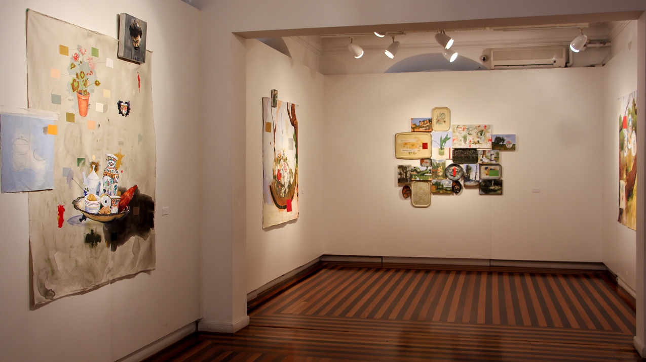 Lição de pintura, bandejas e pinturas, 2015. Dimensões variáveis.