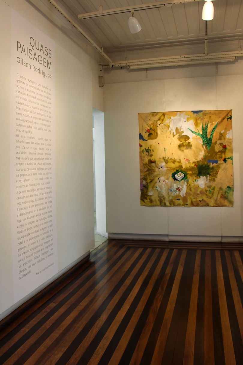 Exposição Quase Paisagem, Gilson Rodrigues. O artista apresenta um trabalho de gabinete de colecionador de estampas no qual a natureza se insere insidiosa, como uma força destrutiva que não pode ser evitada. Uma arte de ruínas que nos adverte sobre o supremo artifício de seu fazer. Massas sólidas e chapadas de cor densa e opaca e empastes grumosos de cores vibrantes alternam entre delicadas campinas, sobre relva viçosa, nos céus de azuis líquidos.
