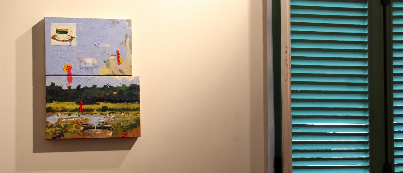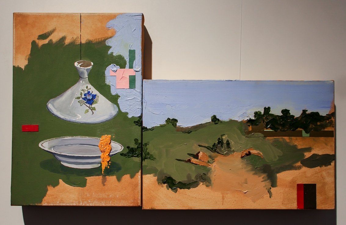 Arranjos em ambiente amplo, 2015. Óleo sobre tela, díptico, 30x20 e 40x20cm.