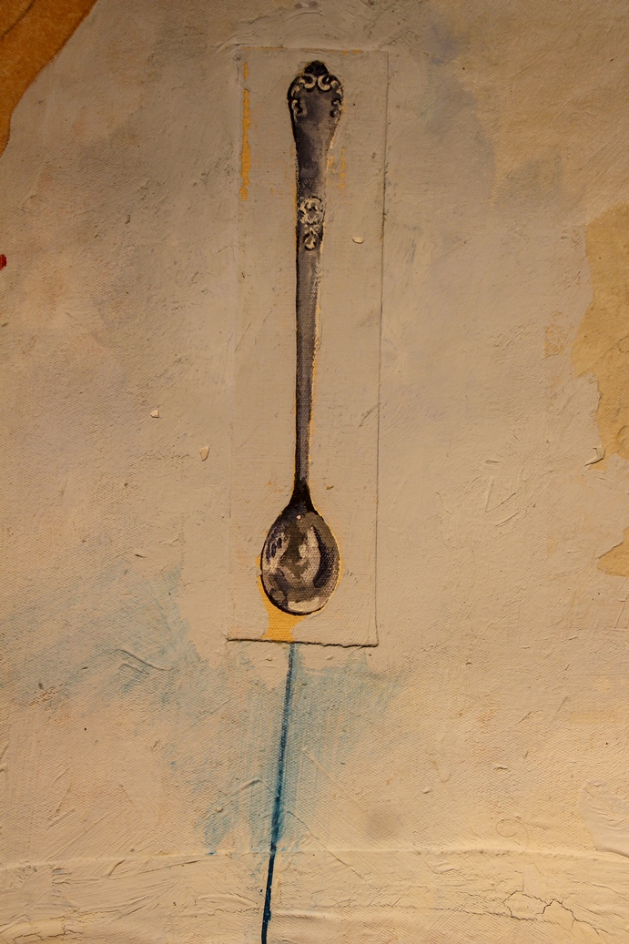 Passeio | detalhe, 2016. Técnica mista sobre lona, 140x150cm e 15x20cm.