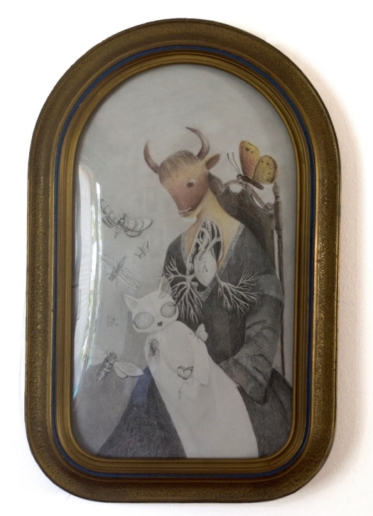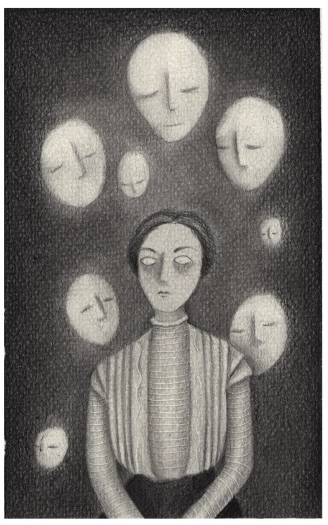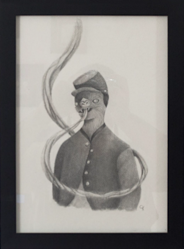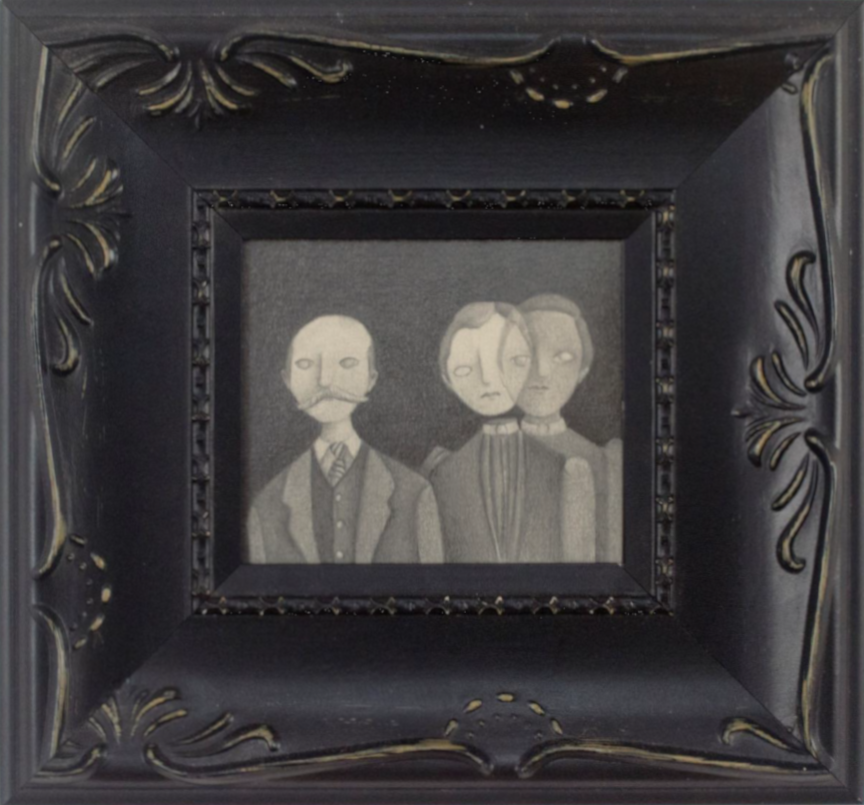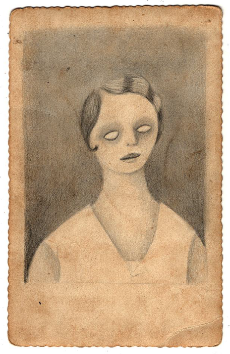 Se a fotografia post-mortem intencionava simular a vida, ainda que por alguns segundos àquela figura que posava, Carol Krügel intenciona dar vida e história a esses personagens que desenha. Por vezes ela se utiliza de fotografias encontradas em feiras antigas, e em caixas de memórias da própria família, para utilizar como base da criação de seus seres fantásticos, que se apresentam em uma linha tênue de realidade e ficção, de estudo histórico e memórias de família.