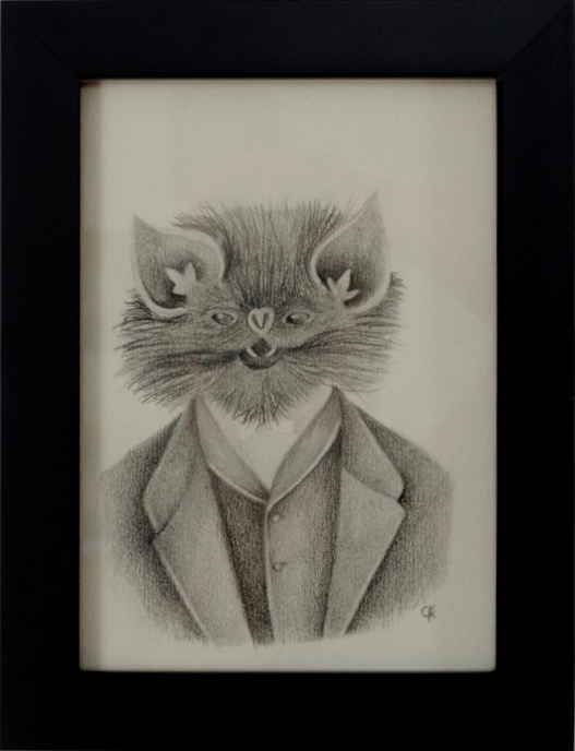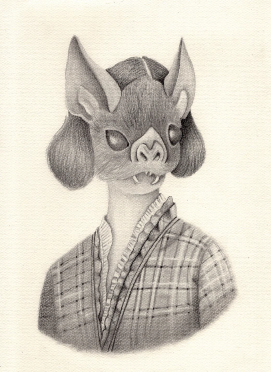Retrato de senhora da família Chiroptera, ilustração a grafite, 2018. 29,7 x 21 cm. Fonte: Carol Krügel.