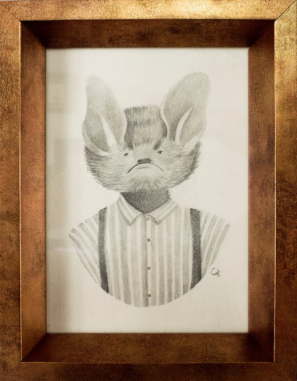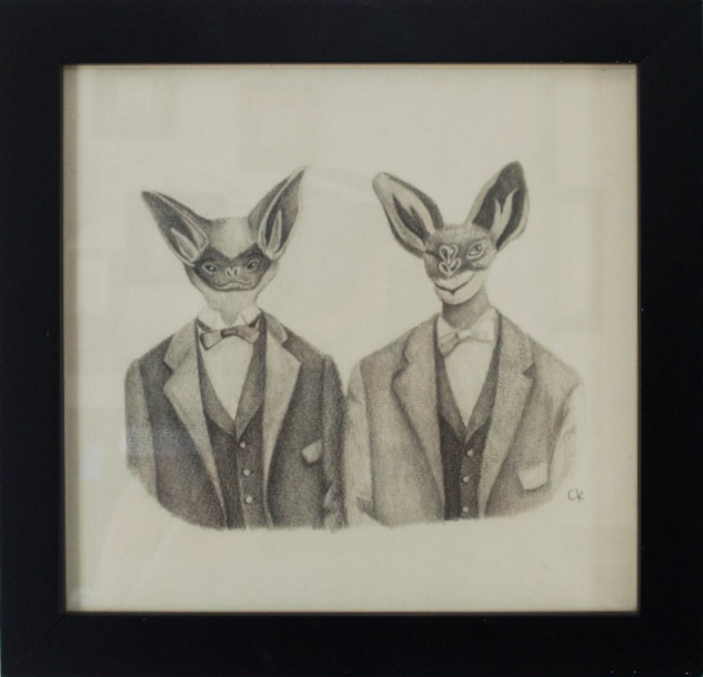 Em memória aos primos Spafina Linn e Vefpertino murinus Linn, Ilustração a grafite, 2018. 24,5 x 23,5 cm. Fonte: Carol Krügel.
