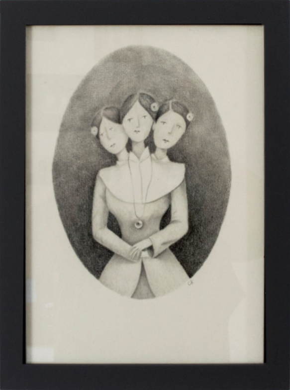 Retrato de Margareth e sua falecida mãe, ilustração a grafite, 2021. 33,5 X 24 cm. Fonte: Carol Krügel.