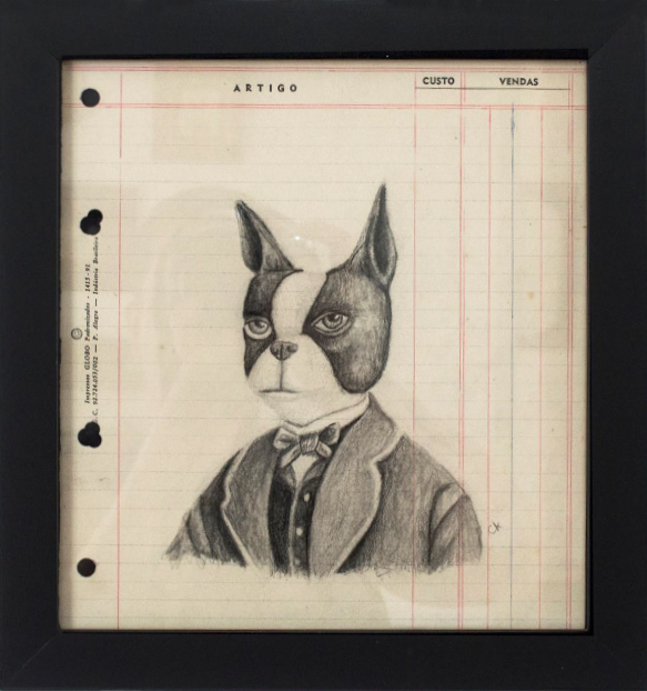 Lirineu, o cão, ilustração a grafite s/ página de livro, 2018. 21 x 22 cm. Fonte: Carol Krügel.