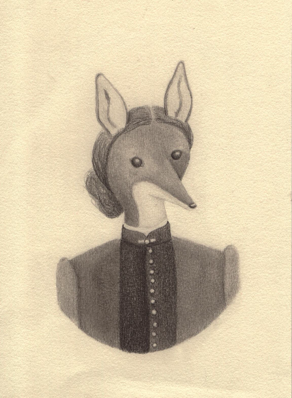 Sra. Canis Lupus, ilustração a grafite, 2018. 14,8 x 21 cm. Fonte: Carol Krügel.