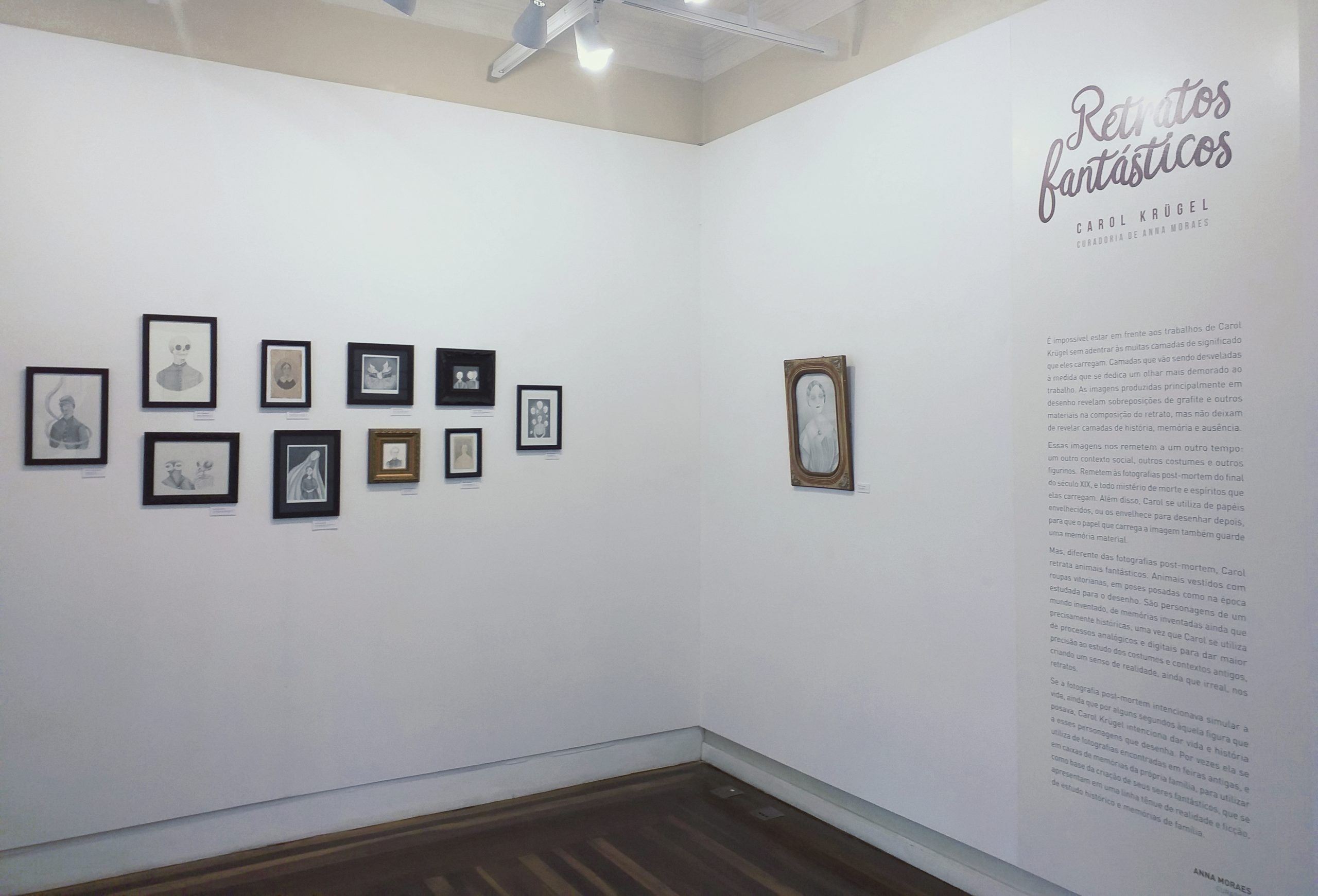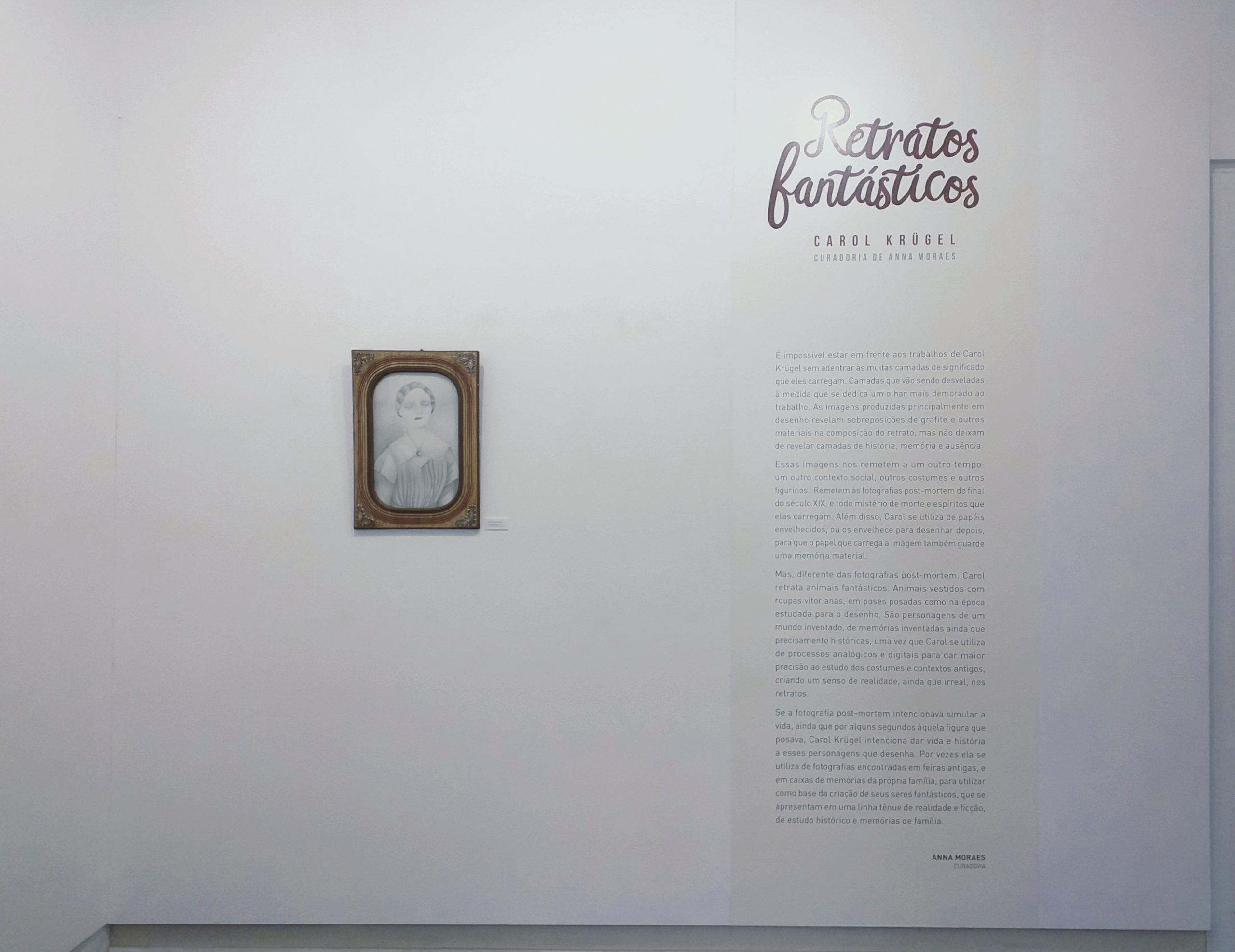 Trabalhando principalmente com lápis sobre papel envelhecido, a artista cria retratos de seres fantásticos, criando fotografias desses personagens nesse mundo antigo inventado, onde se apresentam como precisamente históricas e ao mesmo tempo com algo de irreal. Carol Krügel é pós-graduada em Ilustração pela Universidade do Vale do Itajaí (2018) e bacharela em Artes Visuais pela Universidade Federal de Santa Maria/RS (2015). Mora em Florianópolis/SC e trabalha com ilustração, gravura em metal e encadernação e há cinco anos participa do circuito de feiras gráficas locais e nacionais. A exposição foi selecionada pelo Edital 2020 na categoria Primeira Individual.