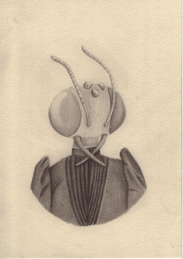 Sra. Mosca, ilustração a grafite, 2018. 14,8 x 21 cm. Fonte: Carol Krügel.