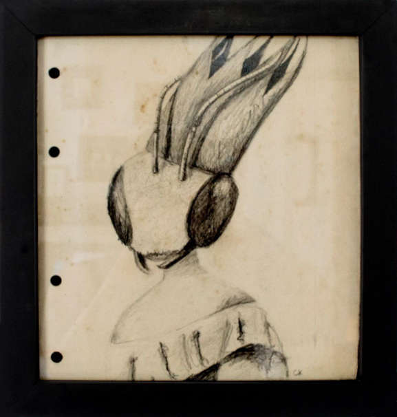 Retrato de Danni Higgins, grafite s/ fotografia antiga, 2020. 15,5 x 20,5 cm. Fonte: Carol Krügel.