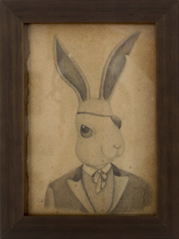 Sr. Lepus Leporidae, grafite s/ página de livro, 2018. 20,5 x 15,5 cm. Fonte: Carol Krügel.