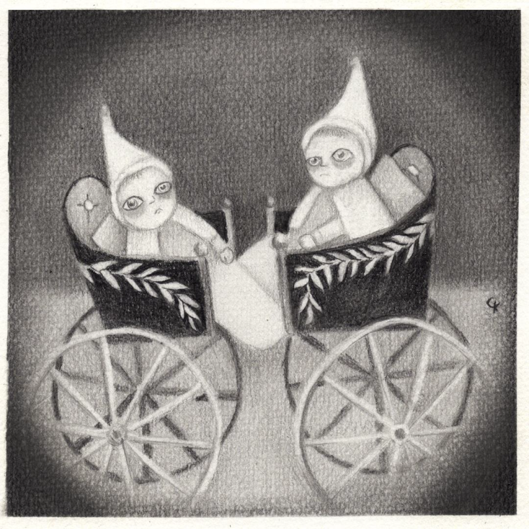 Retrato fantasmagórico de gêmeos, ilustração a grafite, 2021. 24,5 x 23,5 cm. Fonte: Carol Krügel.