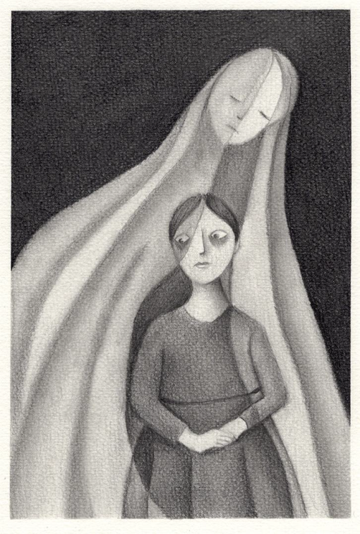 Retrato da Senhora Morte, ilustração a grafite, 2018. 29,7 x 21 cm. Fonte: Carol Krügel.