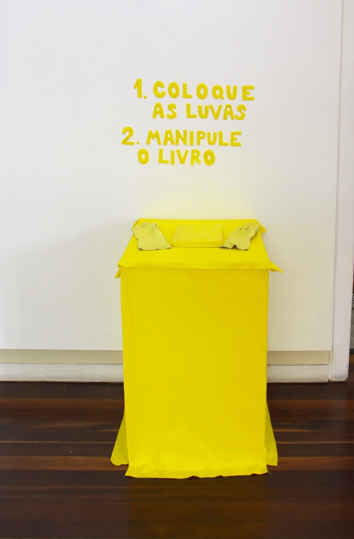 Objetos e materiais cotidianos de limpeza e higiene, em ‘Setor Terciário’, aparecem como elementos estéticos, suportes e como o próprio trabalho.Um livro totalmente amarelo, para ser visto/lido com luvas de limpeza amarelas em um desvio para o amarelo, citando Cildo Meirelles. Um simulacro de espelho plástico e copos hiperrealistas se apresentam como reais, ao nos aproximarmos, os objetos se revelam como ilusões.