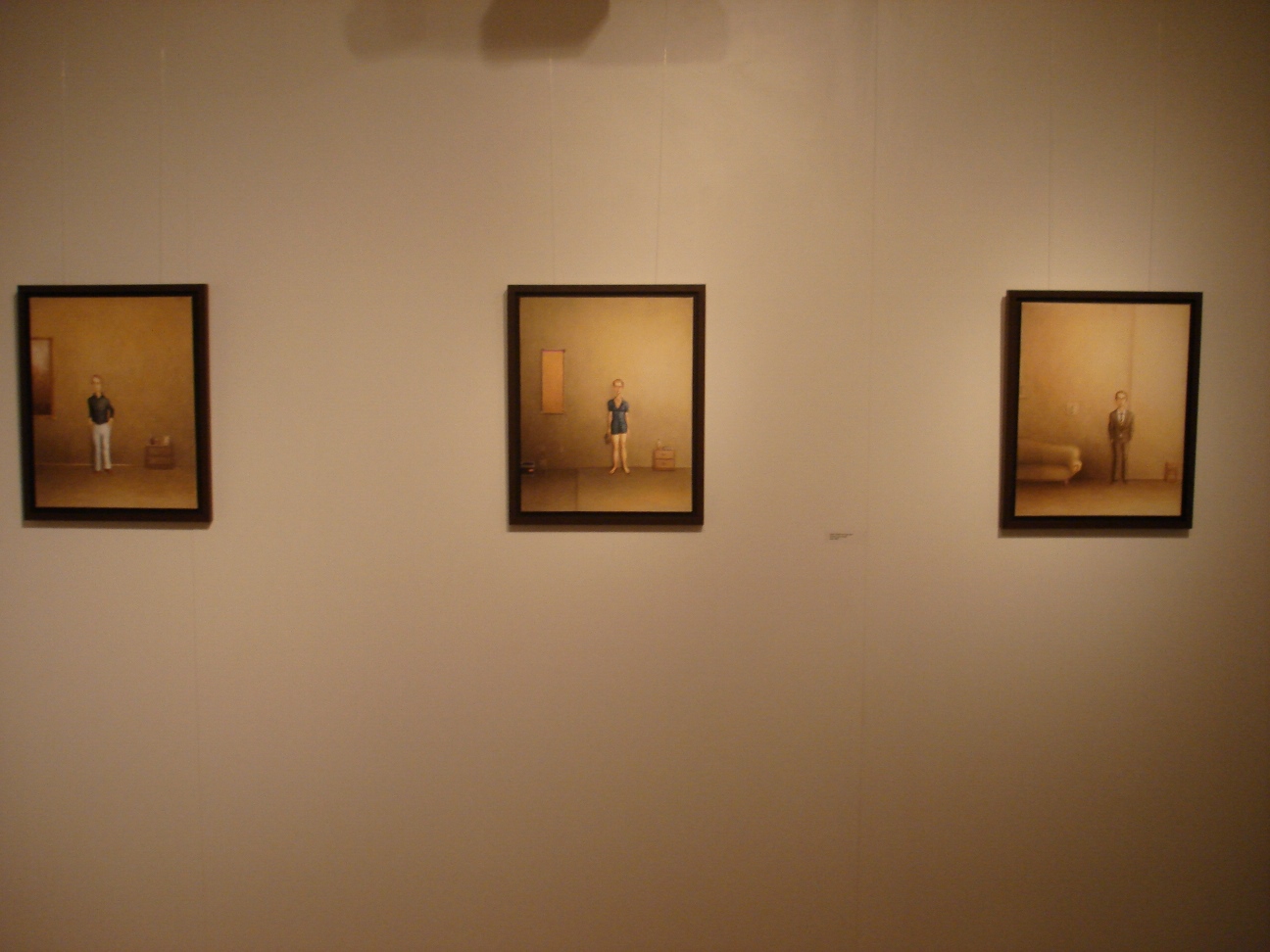 De modo geral as figuras destes personagens sem história nem rosto aparecem sentadas no canto de imensos sofás ou simplesmente de pé com mãos e braços rentes ao corpo perplexas por algum indecifrável enigma.