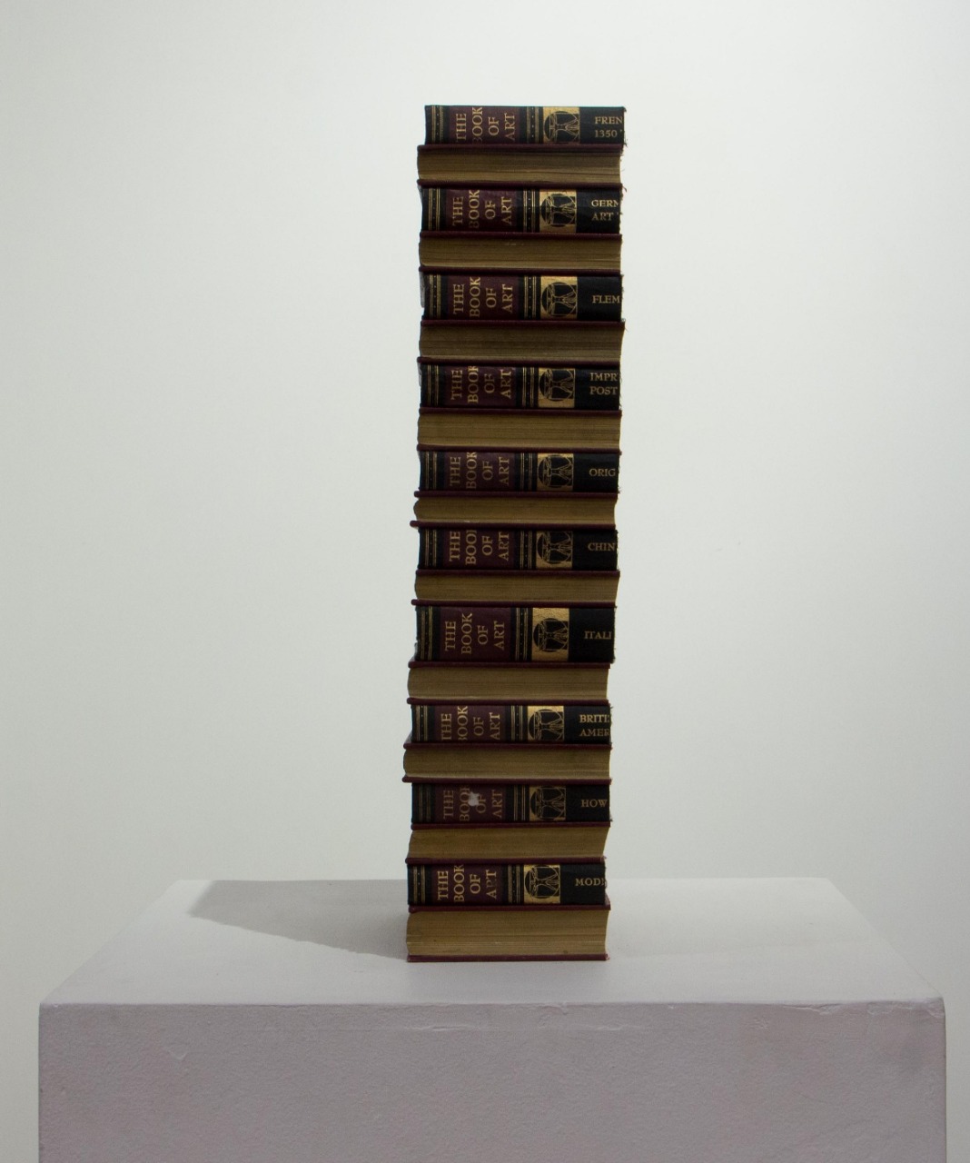 Os livros que usamos em nossa formação respondem à distintos olhares: historiadores, filósofos, pesquisadores, artistas, etc. Estes, escrevem os textos com formulações que respondem à inquietudes pessoais, e cabe a nós a decisão de saber onde nos circunscrevemos. Por exemplo, a história da arte que podemos aprender a partir de diferentes posturas: a imagem e a iconografia de Aby Warburg, Gombrich ou Panofsky. Cada um deles, em seu contexto e sua forma de ver o mundo implantaram uma visão da arte que pode ser considerada por alguns e, por outros não. Desta maneira, 1/3 de la Historia, retoma essa ideia, como referência historiográfica para abordar o tema da crítica institucional a partir de uma série de objetos artísticos (Enciclopédias), modificando sua função e mostrando apenas uma parte do conteúdo do livro.