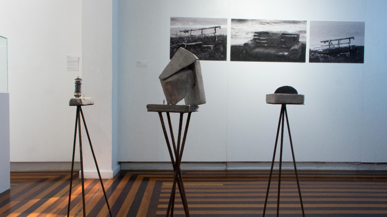 Material: Concreto, plástico e válvula sobre bases de ferro.