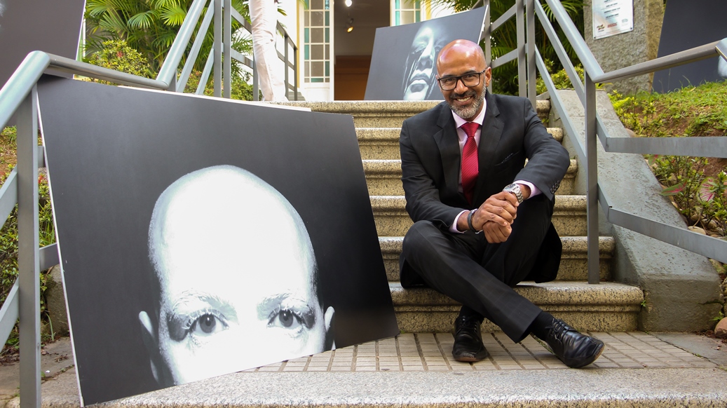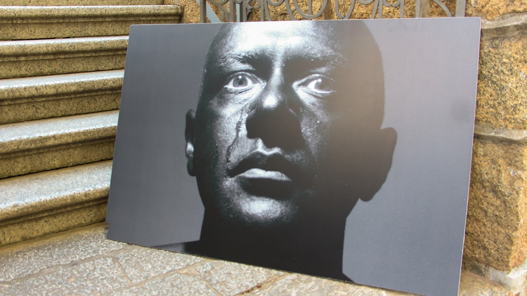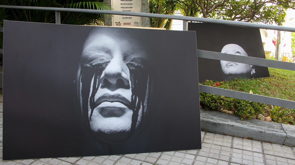 A mostra reúne 12 autorretratos do artista intitulados Preto de Alma Branca e Branco de Alma Preta. Criadas solitariamente em estúdio, as obras revelam seu rosto pintado ora de branco e com choro de lágrimas negras, ora em tom negro e lágrimas brancas. O projeto parte de um modo expositivo móvel para ser realizado em praças e calçadas de grande circulação. Na Escadaria e Jardins da Fundação, o artista provoca o público mediante conversas e reflexões sobre arte e racismo. Sérgio Adriano H é formado em Artes Visuais e mestre em Filosofia. Natural de Joinville/SC, o artista estuda e produz entre as cidades de Joinville/SC e São Paulo/SP.