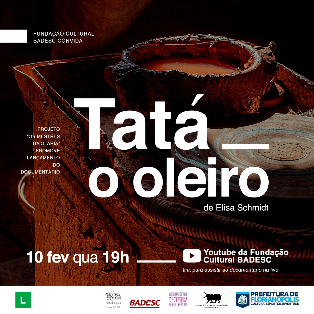 O Cineclube Fundação Cultural BADESC faz no dia 10 de fevereiro, o lançamento do documentário Tatá – O Oleiro. A atividade virtual será a partir das 19h no Canal do YouTube da instituição e conta com a participação da diretora Elisa Schmidt.