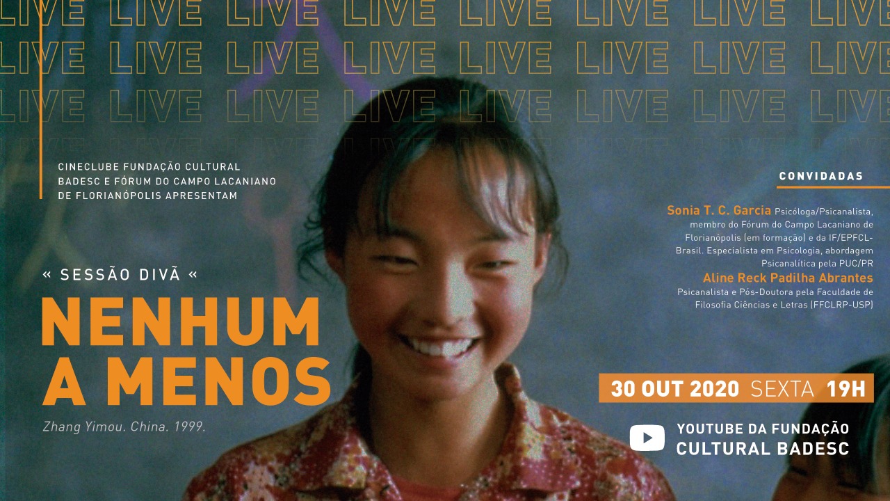 O longa Nenhum a Menos, dirigido pelo aclamado cineasta chinês Zhang Yimou, será tema do debate online na Sessão Divã, que acontece no dia 30 de outubro no canal da Fundação Cultural BADESC no YouTube (http://abre.ai/canalfundacaoculturalbadesc). A live, promovida em parceria entre o Cineclube Fundação Cultural BADESC e o Fórum Lacaniano de Florianópolis, terá transmissão gratuita a partir das 19h.