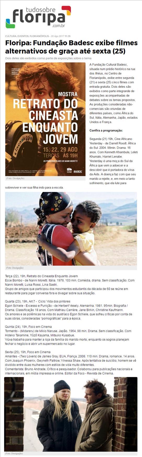 Imprimir PDF eBookO site Tudo Sobre Floripa divulga a agenda da semana do Cineclube da Fundação Cultural Badesc. Programação completa: https://goo.gl/zNPakr