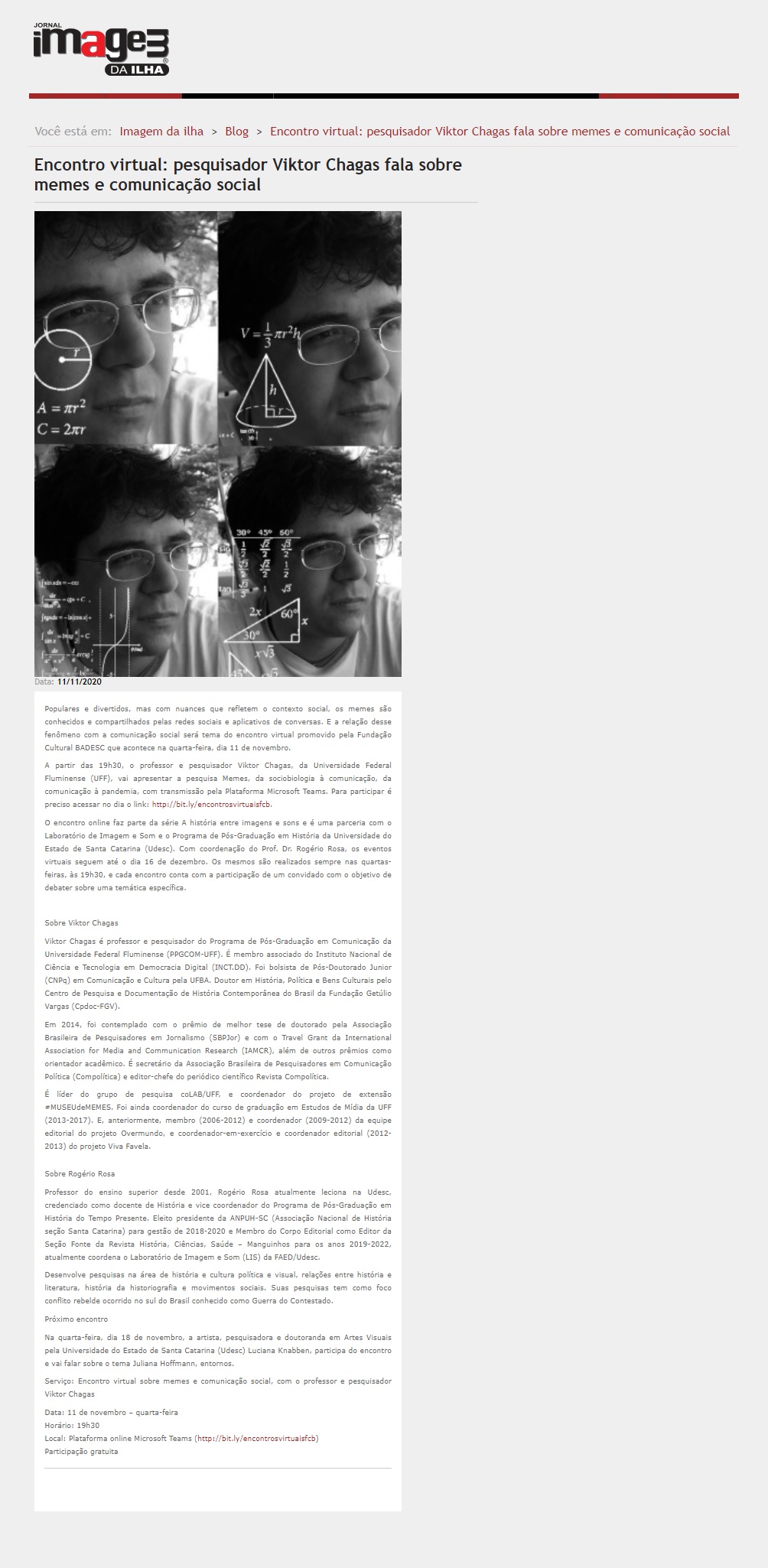 Live com o professor Viktor Chagas é notícia no site Imagem da Ilha
