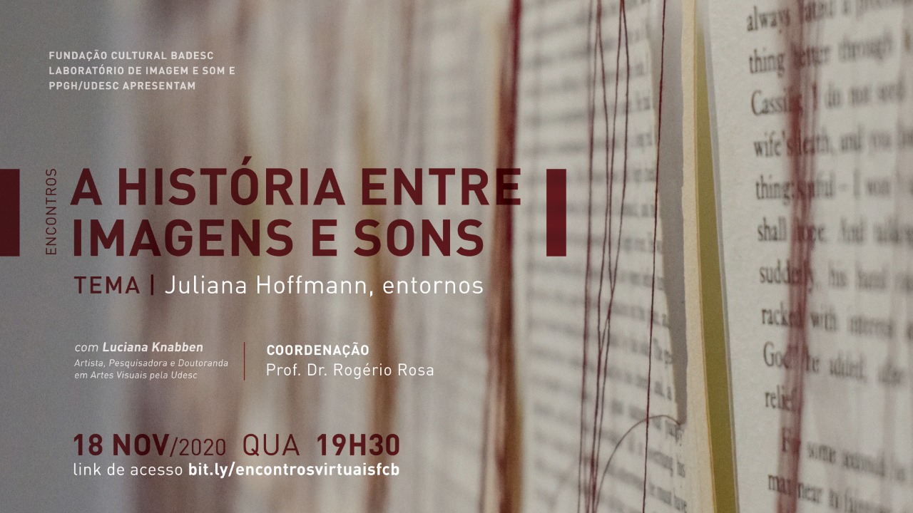 Nesta edição, Luciana vai falar sobre a artista catarinense Juliana Hoffmann. A palestra, que será transmitida a partir das 19h30 pela Plataforma Microsoft Teams, pode ser acessada no dia neste link: http://bit.ly/encontrosvirtuaisfcb.