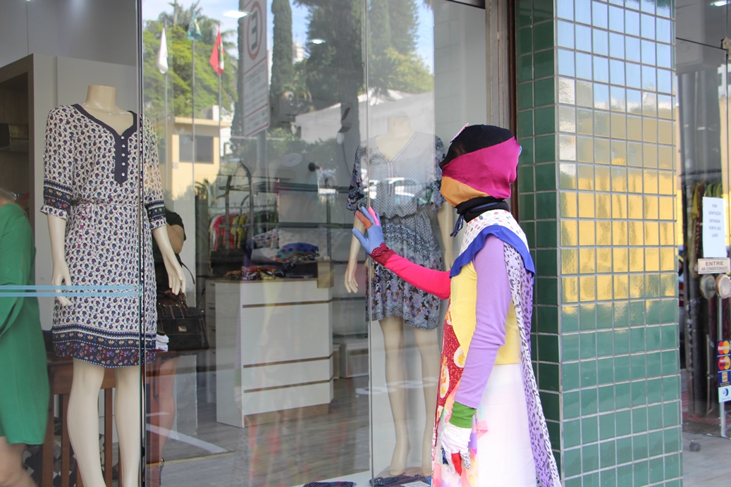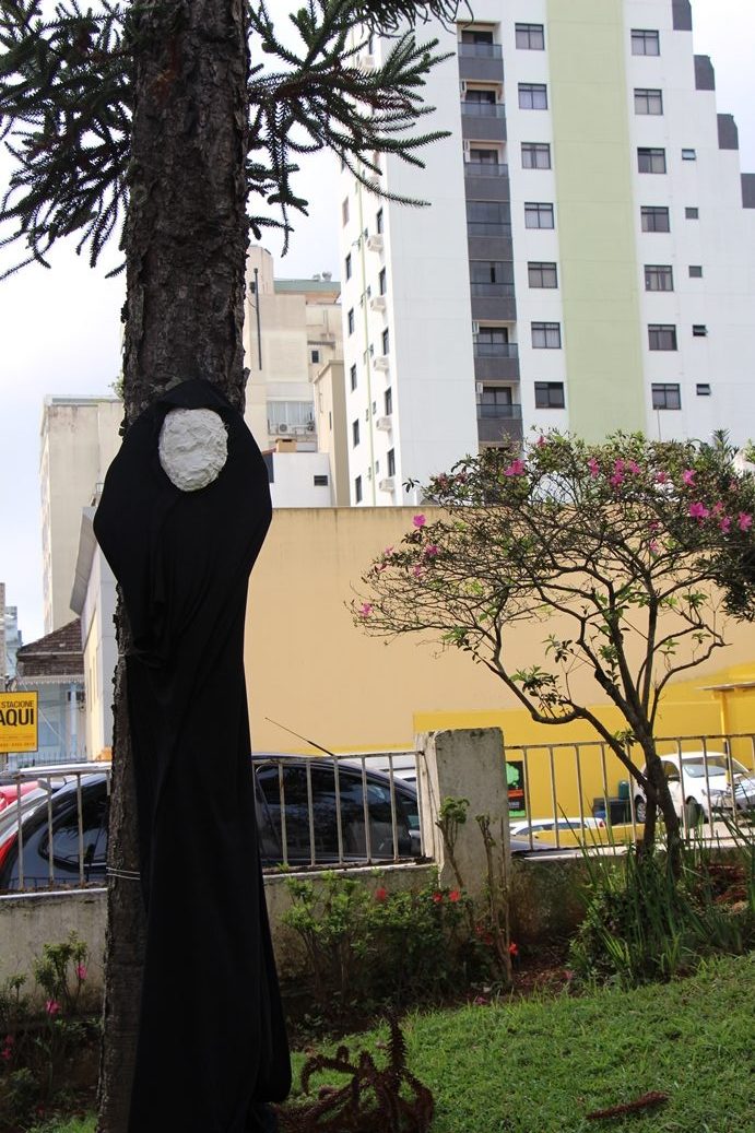 Registro da Performance Verdade 1000 vezes repetida se torna verdade, em outubro de 2015, em frente a Catedral Metropolitana de Florianópolis.