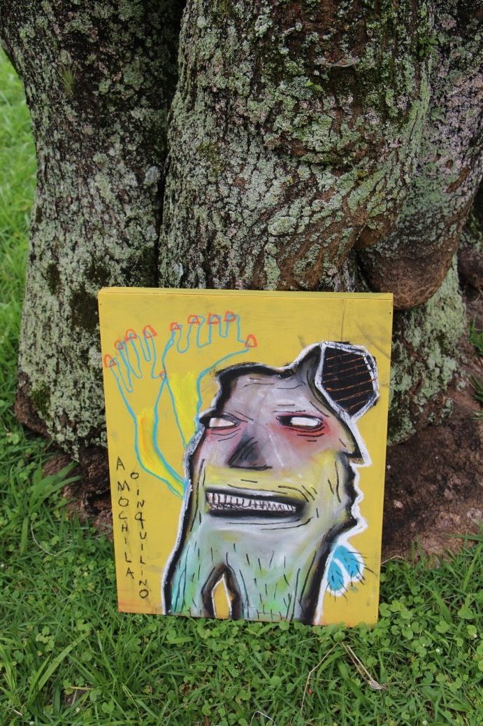A Terra, detalhe, tinta acrílica e tinta pigmentada sobre tela, 2018-2019. 84x50cm. Fonte: Dante Acosta.