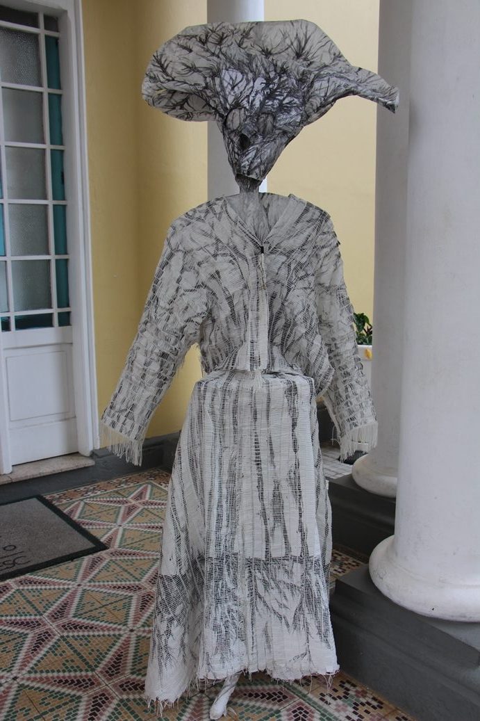 Morfose, 2015. Linho, metal, gesso, galhos de videira e barba de velho (Tlandsya, bromélia), 80x80x170cm.