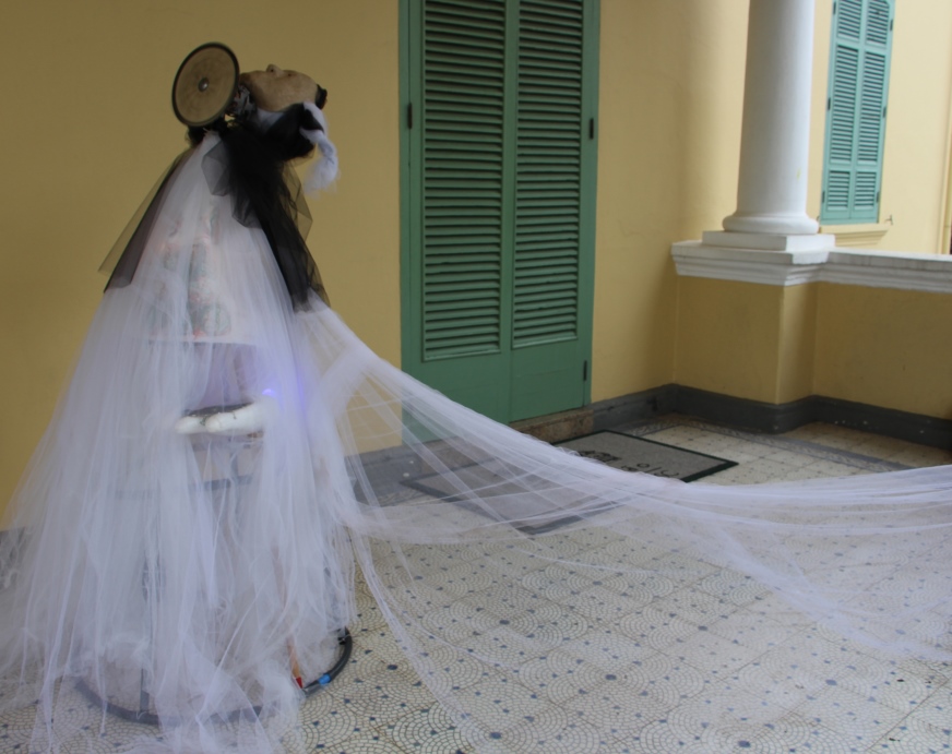 Vestal, 2013. Trama em metal, seda e gesso, 80x290x80cm.